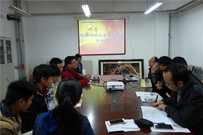 近日,学生工作党支部在院楼2117党员活动室开展了以“与2015级学生干部代表面对面”为主题的党日活动。活动的目的是为了了解并帮助2015级班干部解决工作中遇到的问题,引导大家尽快成长为一名优秀的学生干部。