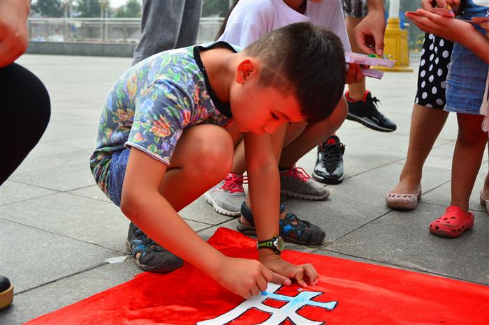 活动伊始,为吸引路人关注,队员们先后表演了《最炫民族风》、《朝阳沟》、《抗战那些年》等节目。随着观众越来越多,队员们开始进行红色文化宣讲并拿出拼图与颜料邀请现场观众为拼图上色。观众与队员合力将拼成“忆往昔峥嵘岁月,扬今朝红色精神”十四个大字粘在一面党旗上,现场观众纷纷拍照留念。