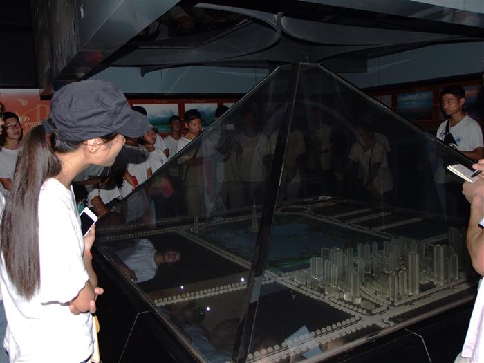 接着,队员们走进了城市规划展区。在这里,队员们观看了焦作的城市规划模型。看完分散的水系绿地系统、城乡一体化示范区、产业规划等一系列规划项目,一名队员告诉记者:“这些山水田园式的概念性规划看上去真的很细致,完全体现了焦作城市规划人与自然和谐共处的理念。”