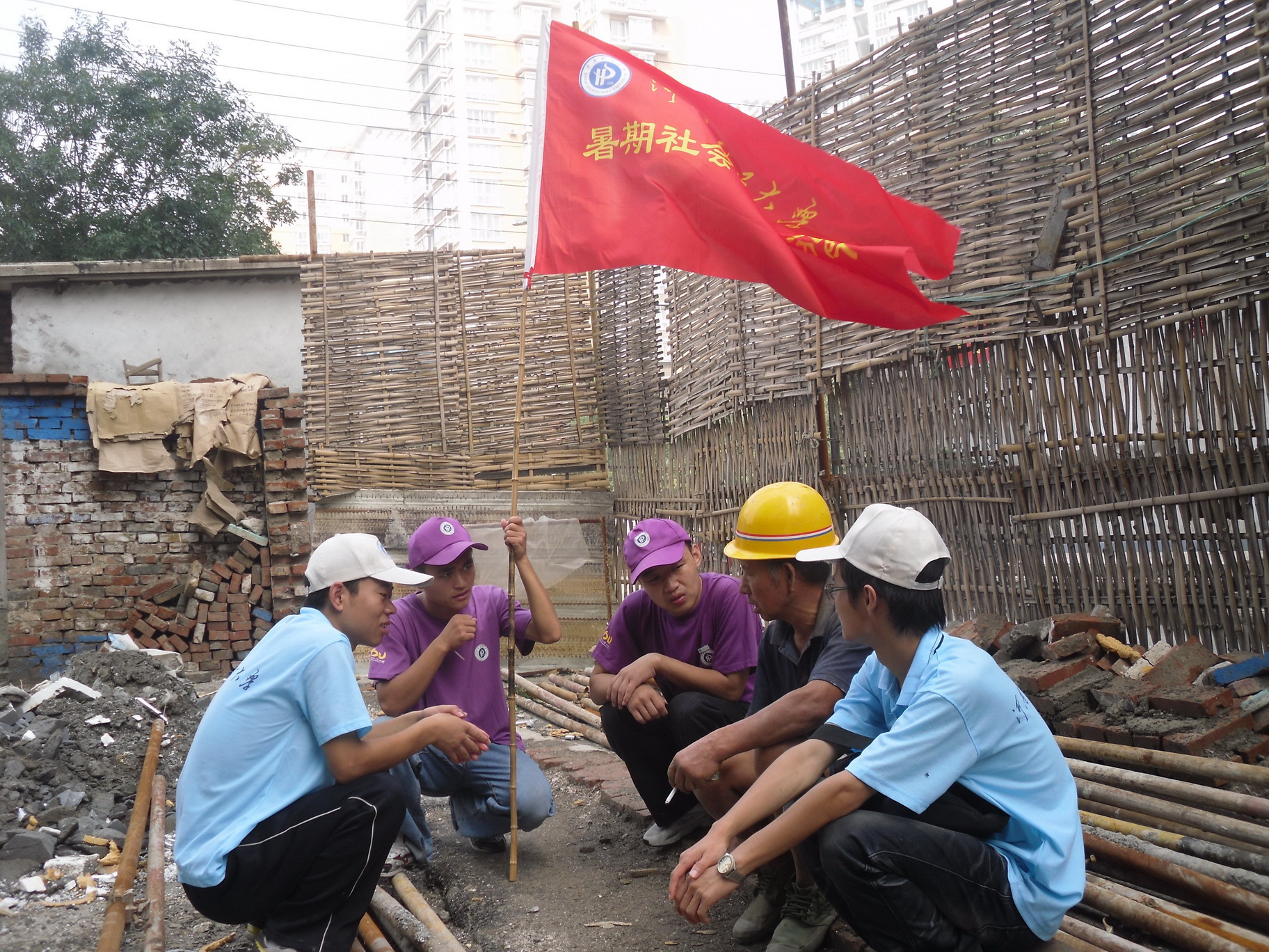 为深入了解农民工生活状况,关注社会低收入人群的生存发展,弘扬我校大爱精神,7月20日上午,我院大学生暑期三下乡社会实践小分队5名成员驱车来到位于龙源湖附近正处于筹建中的恒基花园,走访慰问当地农民工。