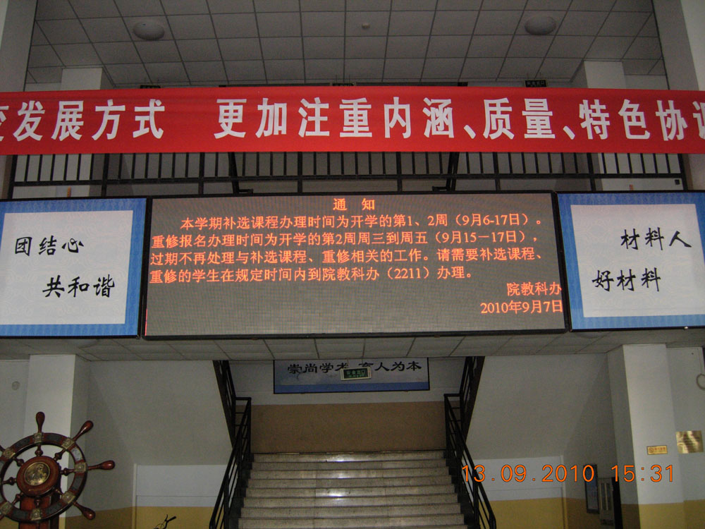 为深入开展学校核心价值理念教育,推进文化兴校战略的实施,今年暑假,我院组织相关工作人员积极工作,努力加强学院文化建设,推进学院文化橱窗、网站建设、宣传彩页等相关工作,使学院和谐文化的氛围越来越浓郁。