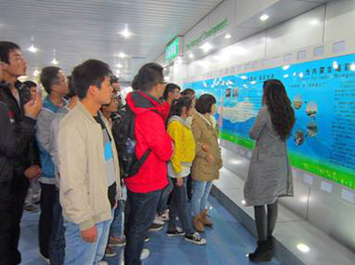 蒙牛是一家专注优质乳制品生产的大型企业,产品涉及液态奶、酸奶、冰淇淋、奶品、奶酪五大模块,遍布全国的72个生产基地源源不断地为中国人提供精品奶源。作为全国最大生产基地之一的蒙牛焦作分公司,自03年成立以来更是得到长足发展,生产规模日益扩大,也为大学生就业提供了一个良好平台。进入蒙牛分公司大门,沿铅蓝色柏油路面缓步向前,首先映入眼帘的是“蒙牛乳业焦作有限公司”几个金色大字,再路过气势恢宏的生产处厂房,便到达了此行目的地——蒙牛“游客中心”。涉足中心大厅,巨大的厂区模盘首先映入眼帘,在解说员的深情讲解下,同学们对公司概况有了更深入的了解,之后,导游引领大家依次参观了设备处、冰淇淋生产车间、乳业发展长廊、全自动化液态奶生产流水线、收奶广场等,大家都全神贯注、仔细聆听,还时不时驻足观看,拍照留念。公司先进的设备、管理理念和厚重的企业文化无不使人印象深刻,引人向往,走廊两旁的文化标语更是让我们感受到了活力十足的蒙牛精神。时间飞快,活动临近尾声,大家同工作人员进行亲切的交流并合影留念。