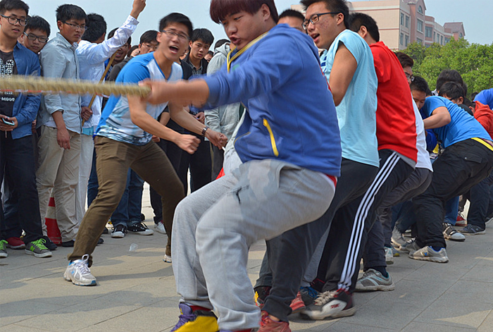 4月24日上午,我校2014年体育节男子拔河项目初赛在新体育场举行。我院学生踊跃参与了比赛。
