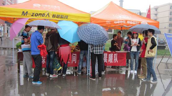 活动前期,志愿者们通过贴示公告、发放宣传单以及微博互动、贴吧共享等方式展开了大力的宣传活动,引起了广大师生的热烈反响。活动当天,天空淅淅沥沥地下起了小雨,但是志愿者的热情并未因此受到影响。两个硕大的帐篷下的桌子上摆满了志愿者亲手制作的手工艺品。一张宣传板上赫然呈现“绿色交换空间”几个大字。简易的现场却蕴含着无限的力量。虽然下着雨,但是络绎不绝的师生或手持旧报刊,或怀揣心爱的玩具,亦或是拿着刚刚买下的种子,纷纷在雨中来到活动地点,开始互相交换自己的物品。看似废旧的物件在一递一传之间,顿增了几分光辉。志愿者们将大家带来的物品有序地登记编号,为热心公益的师生们送上了手工艺品。