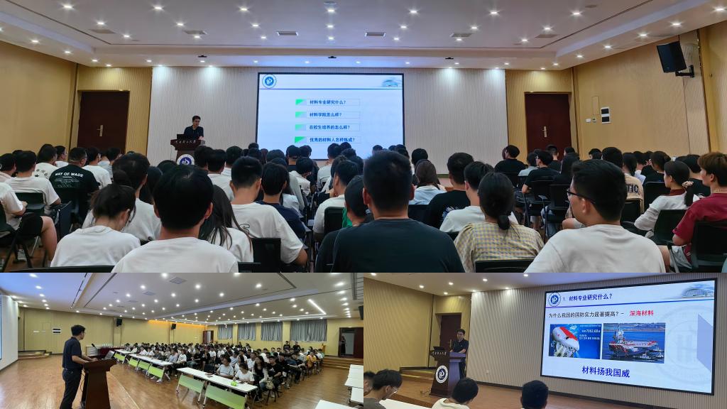会上,朱建平以《材料引领时代 创新成就卓越》为题,从“材料专业的研究方向、材料学院的发展状况、在校生的培养情况、优秀的材料人如何炼成”四个方面展开讲解。首先,他详细介绍了材料学科的研究方向、材料的分类以及材料的实际应用领域,帮助同学们更深层次的理解了材料学科,增强了学生的学科归属感,进一步激发了学生对本学科的热爱。接着,他从材料学院办学历史、杰出校友、师资队伍、学科特色、专业体系、实验室条件以及科研创新成果等方面介绍了学院的发展建设历史以及办学现状,切实增强了新同学的身份认同、价值认同与专业认同;又通过一系列数据展示了学院研究生的论文质量、学术论坛奖项以及研究生毕业去向,呼吁新同学们珍惜来之不易的学习机会,保持对学术的热爱和追求。最后,他强调,进入研究生阶段,学生享有更多的学术自由和独立思考的机会,同时也肩负着更大的学业压力和社会责任,但同时也希望同学们站在新的起点上,志存高远,脚踏实地,把个人目标融入祖国发展的需要中,真正实现崇高的人生价值。
