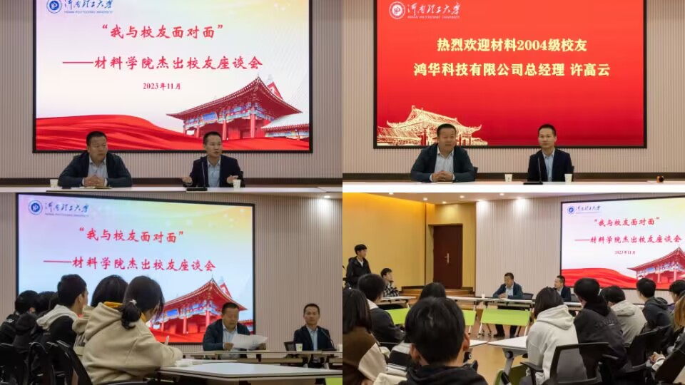 许高云是材料学院材料科学与工程专业2004级校友,在校期间曾获得国家奖学金,并被评为河南省优秀学生干部。2014年在广东创办鸿华科技有限公司,现任该公司总经理,并担任河南理工大学广东校友会执行会长,2017年捐资50万元在材料学院设立“鸿华”奖学金,用实际行动回馈母校培养,也为学弟学妹们树立了榜样。