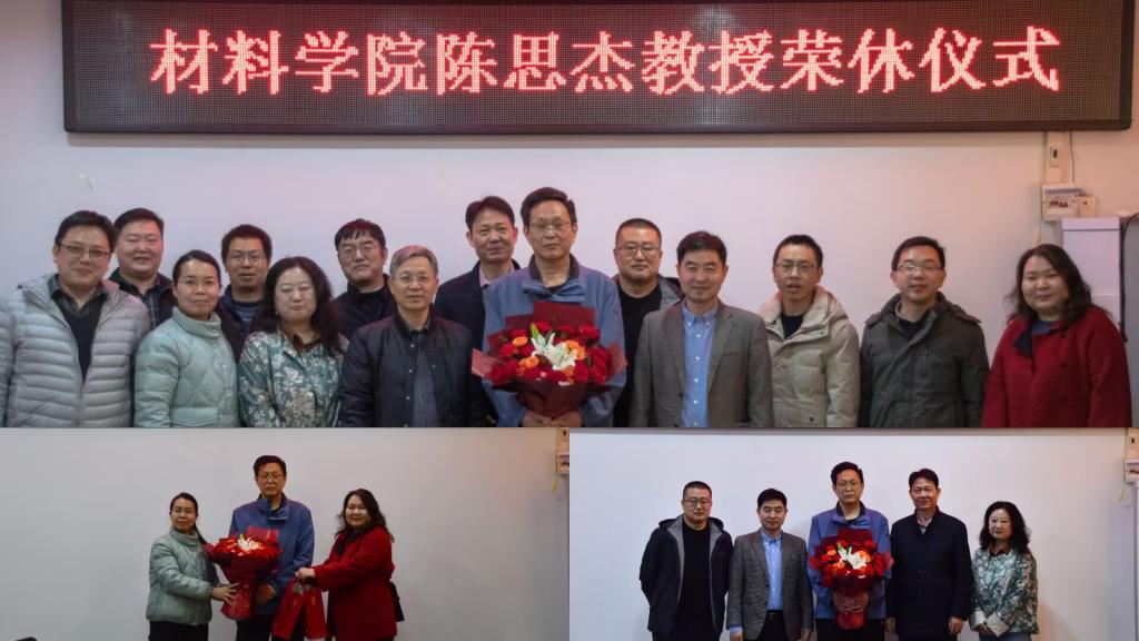 为表达对退休教师的敬意,切实增强教职工退休的荣誉感、仪式感和归属感,引导教职工退休不褪色,3月12日,材料学院在院楼2206会议室隆重举行陈思杰教授荣休仪式。院党委书记杜泽兵、院长朱建平出席,学院教师代表参加此次活动,仪式由杜泽兵主持。