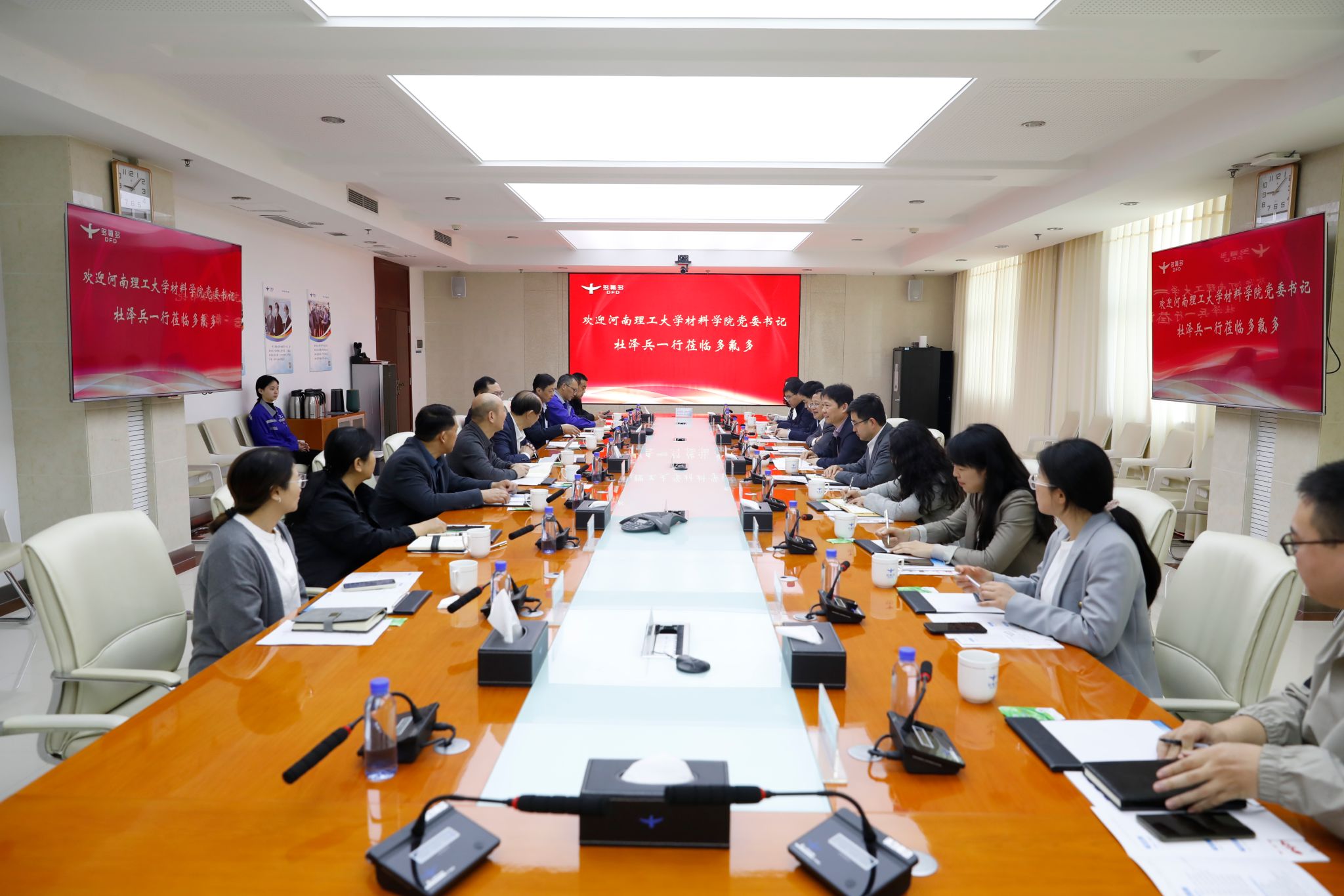 4月8日上午,学院党委书记杜泽兵、院长朱建平带领院领导班子及教师团队,前往多氟多新材料股份有限公司,就新材料产业学院的建设及科研合作展开深入交流。焦作市中站区区委书记董红倜、副区长乔楠以及多氟多董事长李世江、副总经理杨华春、郝建堂等领导出席了此次交流会。