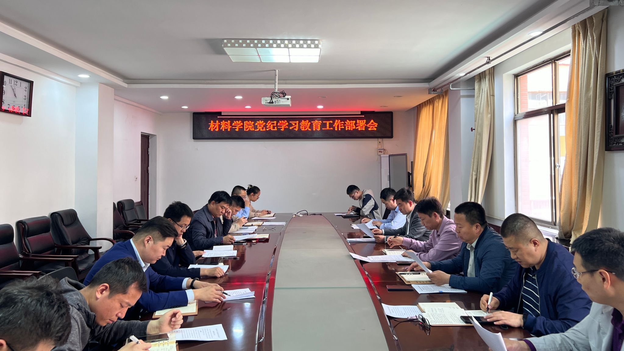 4月16日上午,材料学院党委在2206会议室召开扩大会议,研究部署学院党纪学习教育工作。全体院领导、支部书记、支部纪检委员、科级干部、系主任参会会议。会议由学院党委副书记杜小保主持。