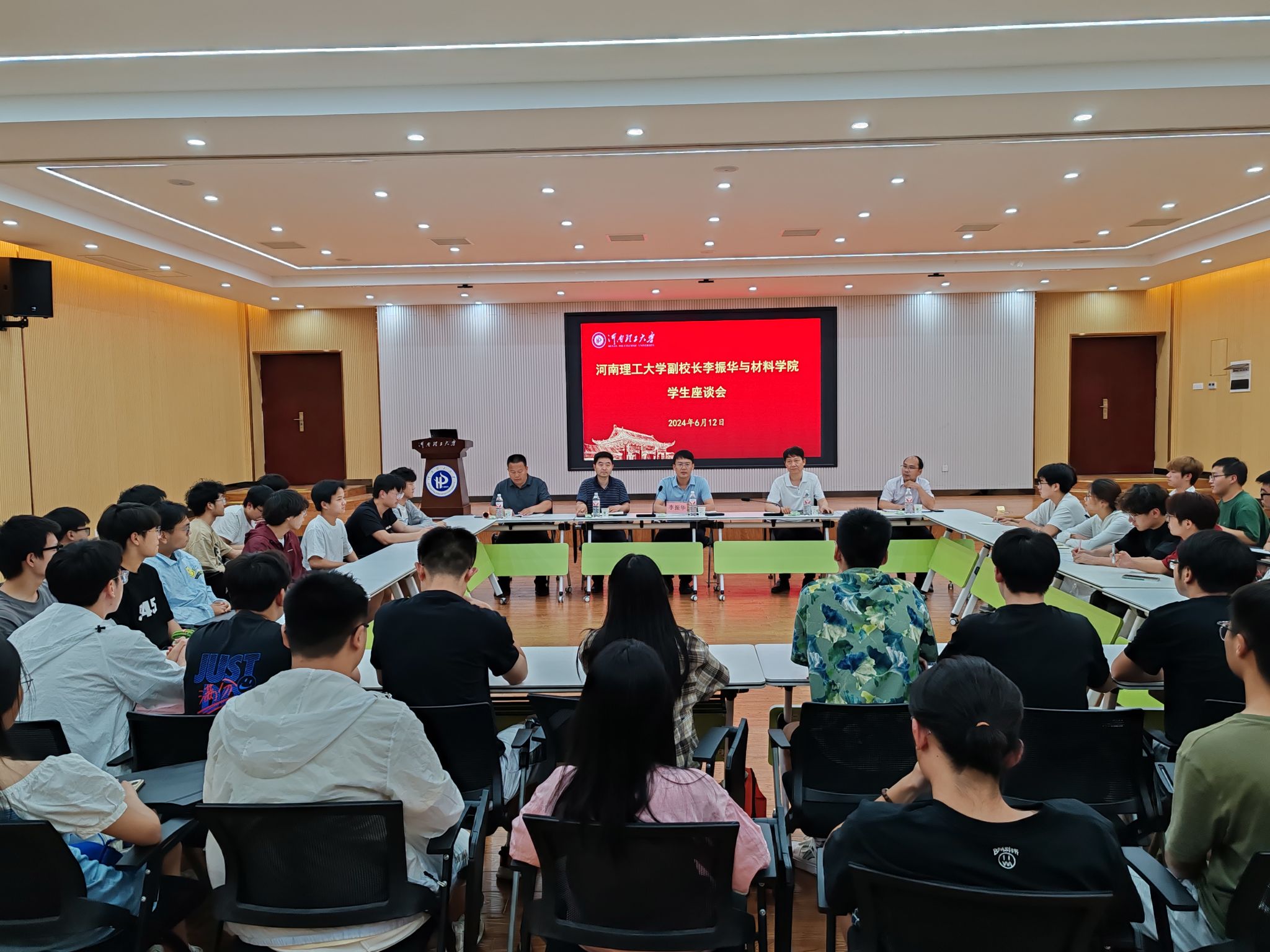6月12日下午,副校长李振华在我院2103多功能厅与我院2023级智能材料与结构、材料科学与工程两个专业的学生代表进行座谈交流。座谈会由我院党委副书记杜小保主持。