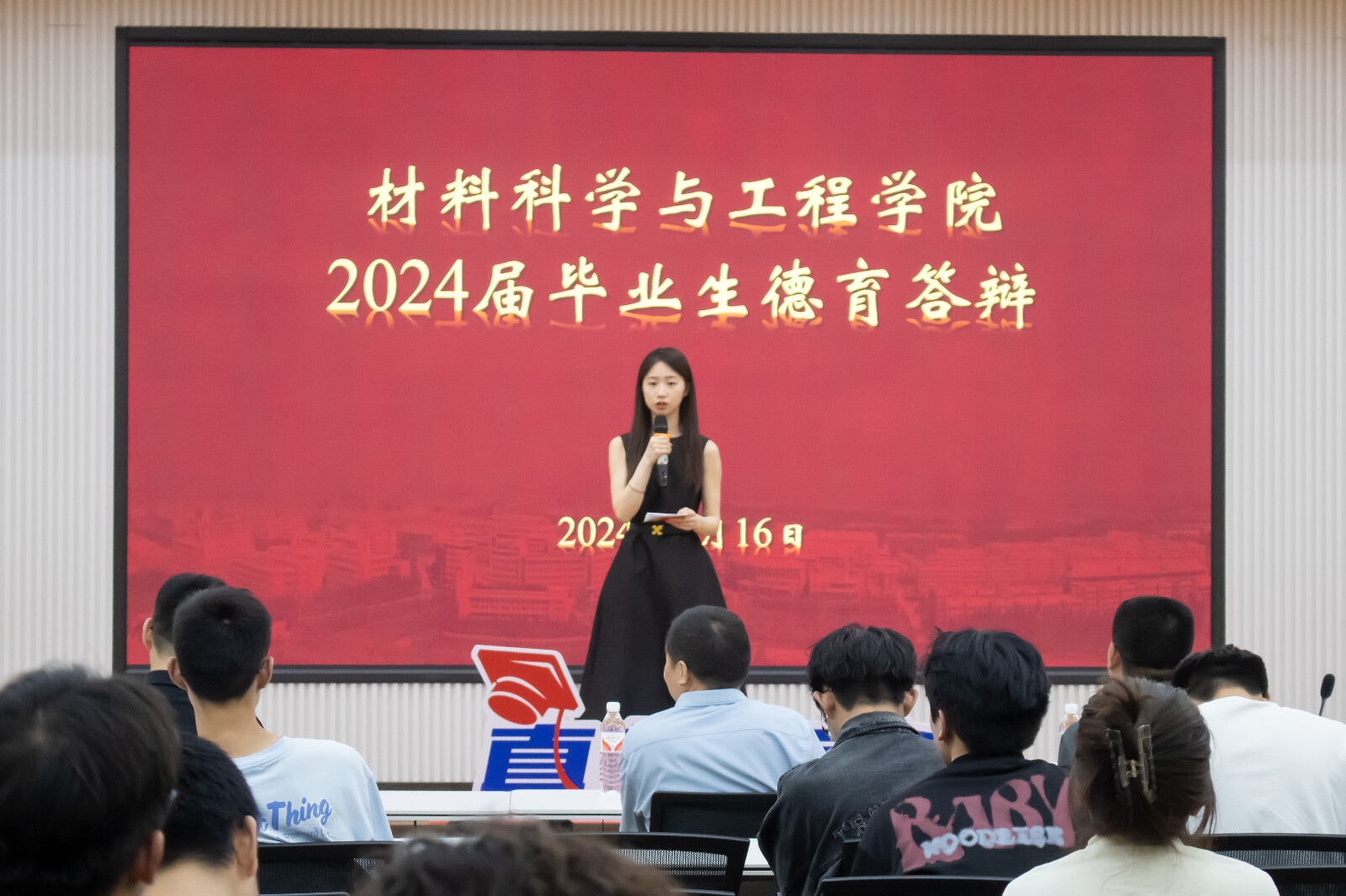 为落实立德树人根本任务,加强毕业生思想政治教育,弘扬传承优良学风院风,6月16日下午,材料学院在该院2103多功能厅举行2024届毕业生德育答辩。学工部(学生处)副部长(副处长)肖庆伦、校团委副书记于江和材料学院有关领导出席答辩会并担任评委,该院16名2024届毕业生代表参加答辩。答辩会由材料学院毕业生辅导员夏家铭主持,该院各年级学生代表旁听答辩。 答辩分为自我陈述和评委问辩两个环节。在自我陈述环节,同学们回顾大学四年的校园生活,结合自己的成长经历和心路历程,畅谈收获与感悟,同时总结存在的遗憾与不足,并在提升思想政治素养、搞好学习、做好发展规划等方面给学弟学妹们提出真诚的建议。评委老师从品德修养、学习方法、人生态度等方面提出问题,同学们都作出了较好的回答。现场旁听的低年级同学也踊跃举手提问,向学兄学姐们进行请教交流。 答辩结束后,肖庆伦和于江分别进行点评,肯定德育答辩的积极意义和同学们的良好表现,并向在场同学提出了持续抓好学习、和优秀的人交朋友、培养吃苦精神、提升政治素养、保持专注力、坚持梦想和追求等希望和要求。 材料学院自2007年起开始在本科毕业生中实施德育答辩,到今年已经连续开展18年,成为该院一项重要学生工作品牌。今后,材料学院将坚持并不断完善这一品牌,坚持“五育并举”,把德育贯穿人才培养全过程,把好人才培养“出口关”,努力把学生培养为“有理想、敢担当、能吃苦、肯奋斗”的新时代好青年。 |
