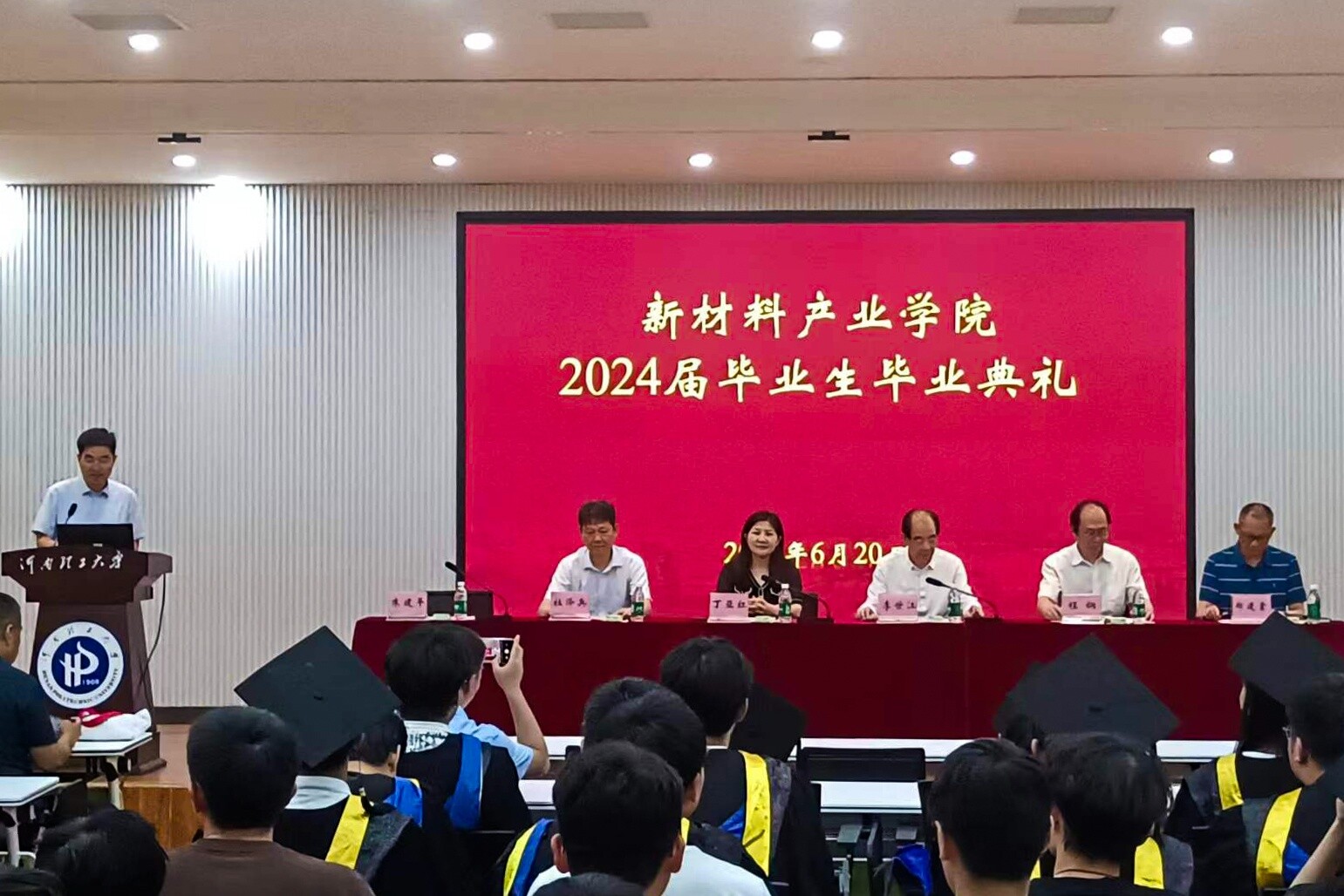 青春不散场,扬帆再启航。6月20日下午四点,新材料产业学院首届毕业生毕业典礼在院楼2103多功能厅隆重举行。河南理工大学副校长丁亚红、新材料产业学院院长、多氟多新材料股份有限公司董事长李世江、校教务处长程钢、多氟多新材料股份有限公司副总经理郝建堂、材料学院党委书记杜泽兵、材料学院院长朱建平出席典礼仪式,材料学院相关领导、多氟多新材料股份有限公司相关人员、新材料产业学院教师代表、产业班2024届全体毕业生、21级和22级产业班全体同学参加典礼仪式。仪式由材料学院院长朱建平主持。 典礼伊始,产业班2024届毕业生代表王李波同学发言,他分享了自己大学期间的学习和生活经历,并表示在新的征程上继续踏实努力、迎难而上。接着,李世江以《唯有创新不可辜负》为题作报告。他通过介绍多氟多新材料股份有限公司的发展历程向同学们传达自身对创新的深刻理解,他表示:“时代在呼唤创新,创新大有可为。我们一定要以数字化的思维和行动主动融入国家发展的大格局,为实现第二个百年奋斗目标贡献自己的一份力量。”随后,李世江为产业班2024届毕业生拨苏正冠、颁发学位证书并合影留念。 紧接着,丁亚红讲话,她首先对多氟多在新材料产业学院发展与建设中的大力支持和倾心投入表示由衷感谢,指出现代产业学院正是以国家和区域产业发展急需为牵引,是融人才培养、科学研究、技术创新、企业服务、学生创业等功能于一体培养模式创新的试验田,为提高产业竞争力、汇聚发展新动能提供人才支持和智力支撑。同时,希望产业班学生带着“明德任责”的校训精神,拥抱大时代,一起向未来。最后,全体成员合唱《河南理工大学校歌》。 大鹏一日同风起,扶摇直上九万里。毕业是一个终点,同时也是一个新的起点。希望同学们不忘初心,勇往直前,带着老师的祝福,用拼搏书写精彩人生,用奋斗铸就辉煌未来! |