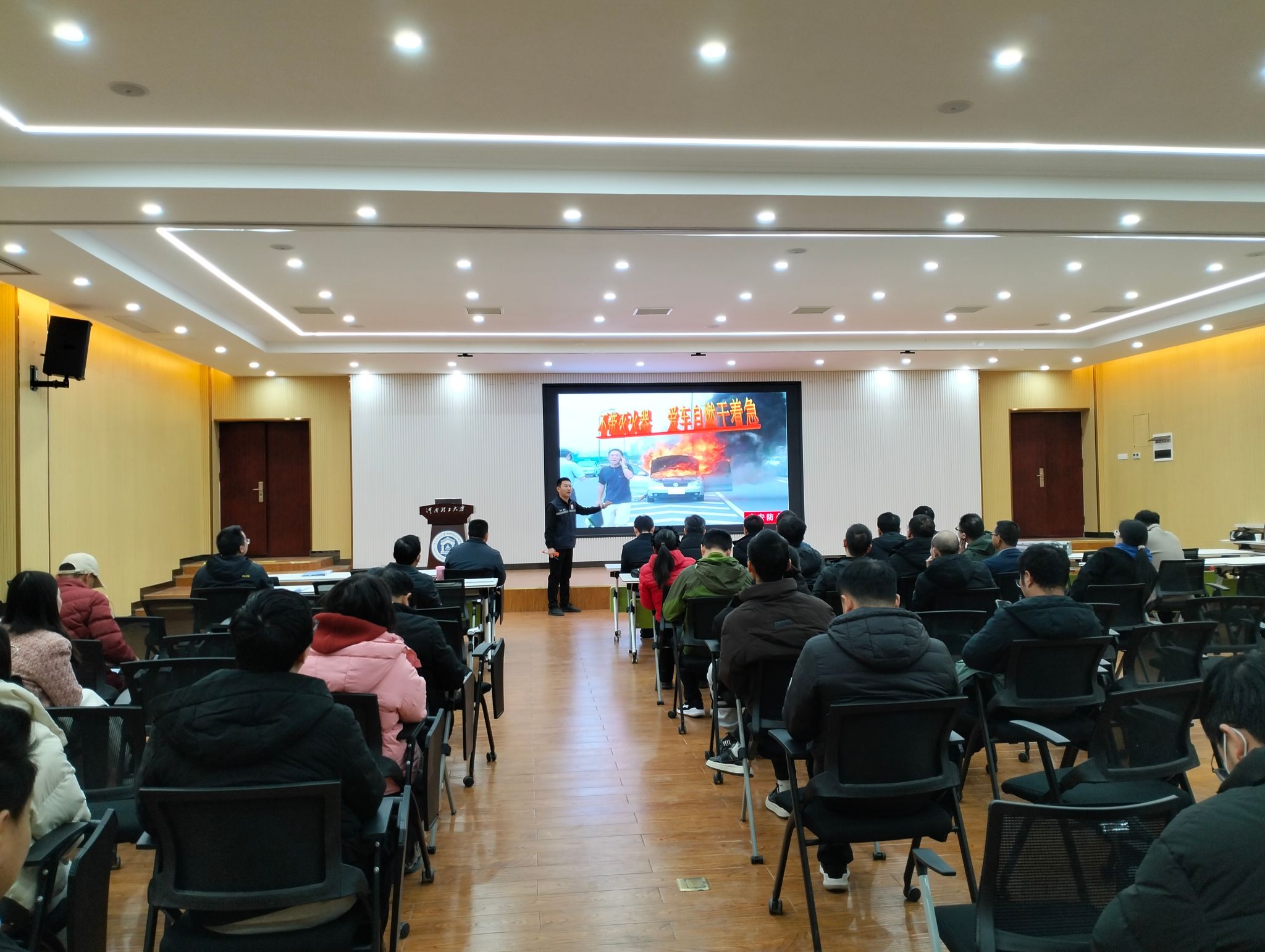 为进一步提高学院教师的消防安全意识,使学院老师熟悉消防安全知识,提高灾害的预防和处理能力。2月18日,材料学院邀请河南宣安消防申亮亮教官到学院以《全民消防,生命至上》为主题进行消防安全知识培训,学院全体教职工参加了本次培训。 培训伊始,老师们观看消防安全案例视频,触目惊心的火灾画面警醒大家要高度重视消防安全,切勿有侥幸心理。接着,申教官着重讲解了火灾的危险性及防火措施;单位内消防设备的性能、灭火器的使用方法;扑救初起火灾以及自救逃生的知识和技能等;确保人员密集场所、重点防火单位的消防安全。申教官从现代消防三要素和火灾的种类,面对不同类型的火灾如何灭火,如何逃生自救等问题进行消防科普。最后,申教官详细讲述了灭火毯、灭火器、多功能强光报警手电筒的正确使用方法并进行现场演示,切实加强了教职工的消防安全意识,提高了教职工的消防安全应急处理能力。 此次消防安全知识培训,提高了全院教职工的消防安全意识和自我保护能力,为创建平安和谐校园环境筑起了更加坚实的安全屏障。 |