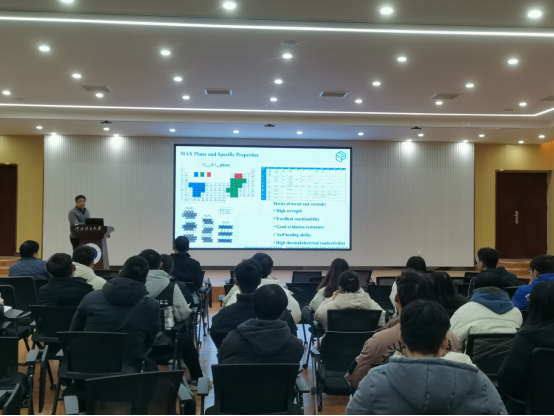 12月12日晚,中铭富驰(苏州)纳米高新材料有限公司董事长及CEO贝国平应邀在材料学院2103,为材料学院师生作题为《层状陶瓷MAX相与MAB相: 从科学研究到工程应用》的学术报告,相关专业教师、研究生和本科生参加了报告会。