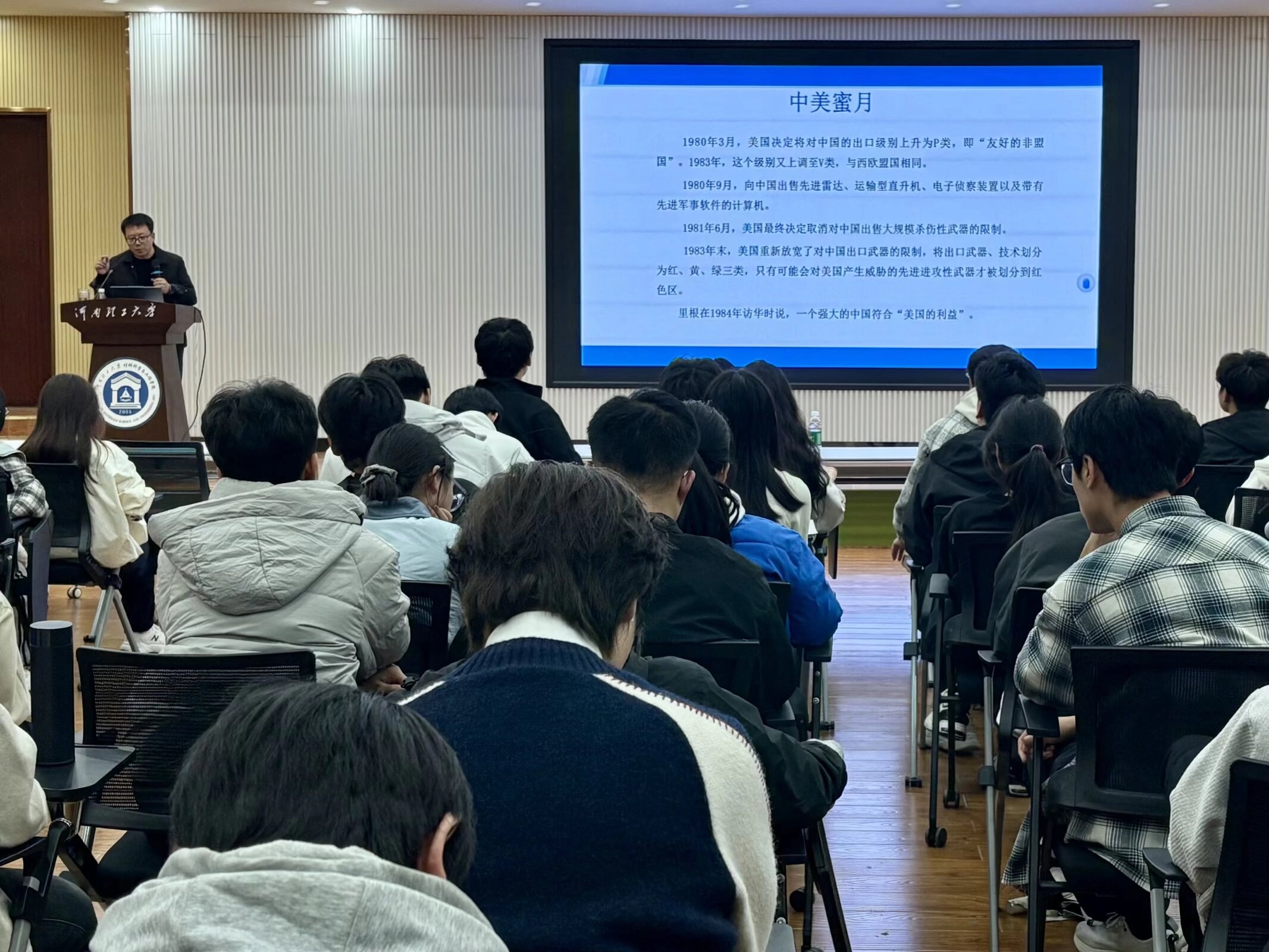 申海涛以“2025年中美关系及其未来走向”为题,带来一场深入浅出的专题报告。他从当前国际格局演变切入,系统分析了2025年以来中美关系的核心议题,并对双边经贸互动的演进脉络进行了专业解读。讲座中,申海涛通过丰富案例与详实数据,生动阐释了中美战略互动的基本逻辑,使复杂的国际关系理论更加贴近现实认知。在展望未来时,他着重从科技发展与全球治理等维度,对中美关系的演进路径提出自己的思考。申海涛强调,面向2030年,中国将持续推进高质量发展,为实现民族复兴奠定坚实基础。