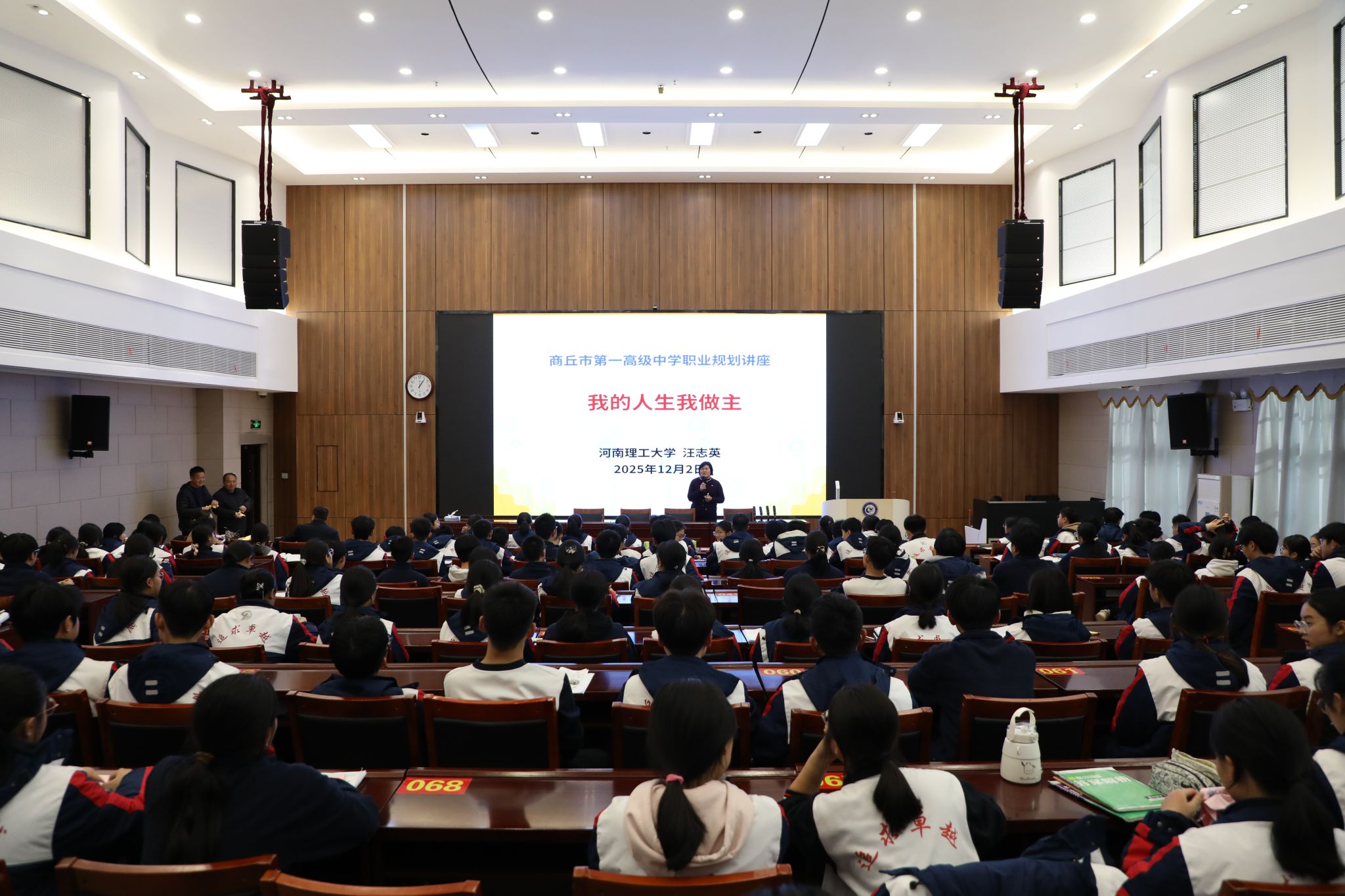 此次走进商丘一高,是我校深化“招生—培养—就业”联动机制、推进优质生源基地建设的重要举措。未来,学校将持续开展“百场生涯讲座进中学”活动,将高等教育资源前移,赋能基础教育,助力更多青年学子实现“人生出彩”的梦想。