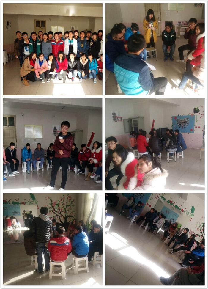 本次活动共分五个环节:让我们彼此相识、让我们心手相连、让我们面对现实、让我们规划未来和让我们成为朋友。首先,由蒲公英使者向参与人员简要介绍了此次活动的目的及意义。接着,全体人员共同完成了“滚雪球”的游戏,班级成员彼此之间更加了解,现场气氛愈加活跃。随后,活动进入“心有千千结”,全班同学心手相牵共同攻克主持人设下的难题,当困难克服大家不禁为自己鼓掌欢呼。接着,活动进入“进入大学的五个最”,同学们促膝分享进入大学以来“最开心的事”、“最满意的事”、“ 最烦恼的事”、“最担心的事”、“ 最期待的事”, 分享的快乐是加倍的快乐,分担的痛苦是减半的痛苦,在分享和分担中同学们的心慢慢地贴近了。最后,活动进入“大学生活拼图”板块,在九宫格中同学们对自己的大学生活进行了规划,并在聆听中学习其它同学的经验,同学们提出对大学生活的不同看法和诸多困惑,蒲公英使者耐心倾听并逐一解答,活动氛围随之达到高潮。最后,伴随着《相亲相爱一家人》的歌声,活动进入尾声,同学们合影留念,依依不舍的结束了本次活动。