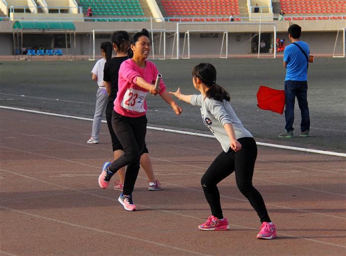 4*400米接力赛是一项速度与耐力的比拼,更是一场青春与激情的比拼,对运动员最大的考验就是长达400米的远距离冲刺。赛前,参赛运动员积极做赛前热身,并交流平时训练的经验。随着发令枪的响起,这场紧张而又激烈的比赛拉开了序幕,运动员迈着矫健的步伐全力冲刺,那一根小小的木棒传递的是勇气和力量、传递的是团结和友爱、传递的是奋斗和拼搏。场外,震天的鼓声和拉拉队响彻全场的加油声交织在一起,传遍整个体育场。最终,我院以优异的成绩进入决赛。