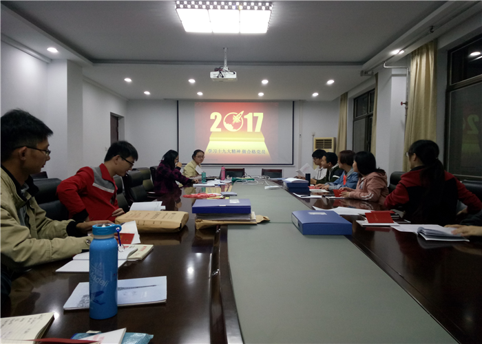 为深入学习贯彻十九大精神,加强支部成员对于新时代、新精神的理解。材化学生党支部于2017年11月7日,在院楼2206会议室召开“学习十九大精神”专题学习,会议由材化学生党支部韦玉潇老师主持,支部全体成员参与。