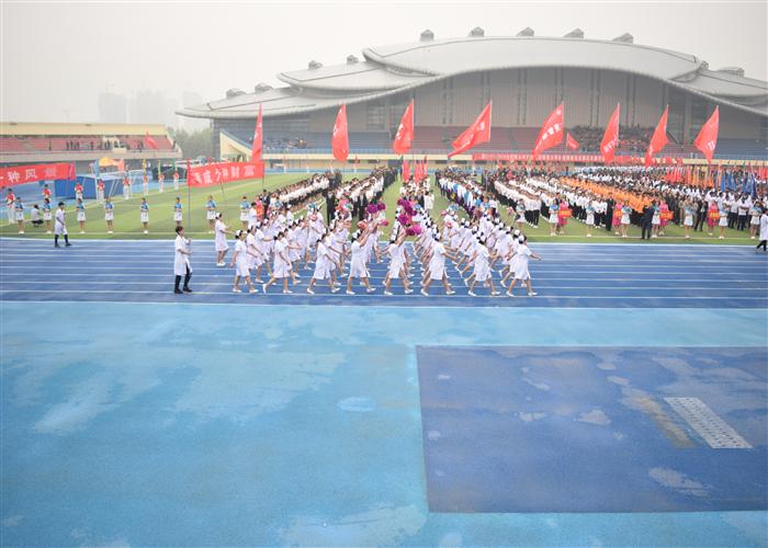 为了加强校园文化建设,丰富同学们的课余文化生活,培养学生良好的身体素质,促进学校体育运动的蓬勃发展。4月14日上午,学校2018年体育节暨运动会开幕式在东区体育场隆重举行。全校师生参加了此次开幕式,校党委书记邹友峰,校长杨小林等领导出席开幕式。