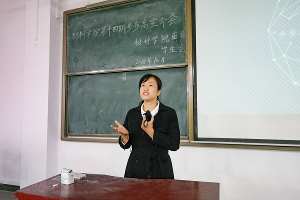 为提升学生科技创新能力,同时为挑战杯科技竞赛选拔人才,10月9日,第十四期“步步高”大学生科技攀登计划宣介会在我院举办。材料学院团委书记朱伶俐、18级辅导员韩一、步步高优秀结项队伍代表及材料学院百余名学生参加了此次宣介会。