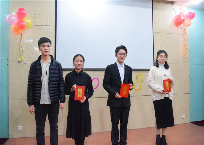 此次决赛采用打分制原则,比赛共分为两个环节,选手首先需要进行自我介绍和才艺展示,然后进入模拟主持环节,每个环节取各个评委所打分数的平均分作为该选手的本环节分数。在自我介绍和才艺展示环节中,选手们良好的应变能力和扎实的语言基础,充分展示了选手们的艺术修养以及对舞台的理解及表达能力。模拟主持环节选手两两一组,以趣味联播、迎新晚会、电视购物等为背景进行模拟,选手们将一个个小节目生动地展示在观众面前,现场氛围进入高潮。最后,经过的精彩角逐,材料1808班马俊乔凭借自己出色的表现斩获一等奖,郭倩倩、赵广煜和胡蝶同学获得二等奖,张子烁、余婷婷、温英杰、裴紫薇、李志波和李啸龙同学获得三等奖。