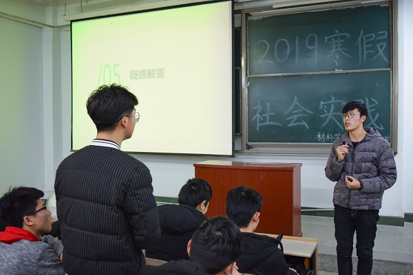 为鼓励学生走出校园、积极接触社会,将理论知识与社会实践相结合,材料学院于1月8日下午在院楼2203室举办“2019寒假社会实践宣介会”,此次宣介会由材料学院学生会实践部组织。