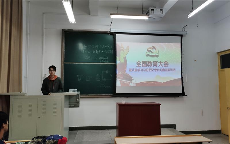 在本次政治理论学习的过程中,通过优秀党员代表讲解课件和视频,我院学生详细地了解《全国教育大会暨认真学习习近平总书记考察河南重要讲话》和《习近平在庆祝中华人民共和国成立70周年的讲话》的相关内容。我院学子通过观看《全国教育大会暨认真学习习近平总书记考察河南重要讲话》的课件,了解教育对民族振兴、社会进步的意义;治理黄河对绿色发展、改善民生的意义;推进制造业发展对我国发展实体经济、自力更生的意义等。优秀党员代表在讲解《习近平在庆祝中华人民共和国成立70周年的讲话》的视频时说:“习近平总书记的重要讲话,回顾了新中国成立70年的光辉成就,发出了新征程上接续奋斗的伟大号召,是中国人民和中华民族在新时代迈向新辉煌的宣言书和动员令。”优秀党员代表表示,当代大学生必须要团结在以习近平同志为核心的党中央周围,不忘初心、牢记使命,为实现中华民族伟大复兴的中国梦而努力奋斗。