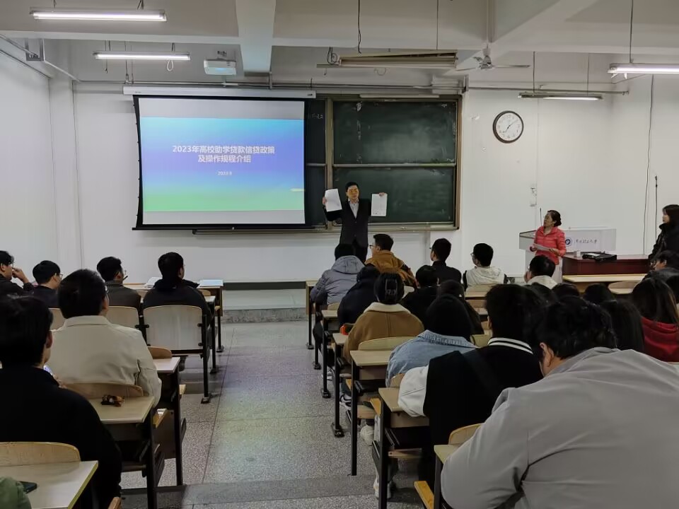 为贯彻落实学校关于国家开发银行高校助学贷款的相关工作要求,帮助家庭经济困难学生能够顺利完成学业,推动落实高校国家助学贷款政策,材料学院于11月10日晚19:00,在院楼2202、2203教室举行2023年度高校助学贷款政策宣讲及签约仪式。此次会议由杜少康老师主持,申请2023-2024学年国家开发银行高校助学贷款的全体学生参加。