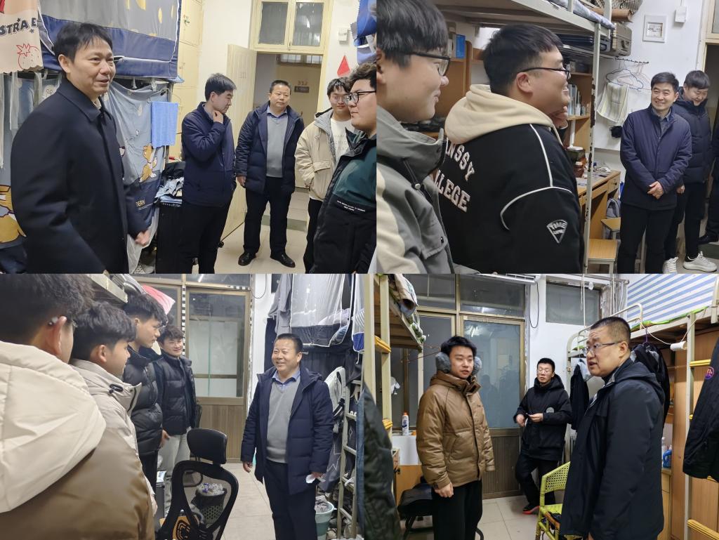 新学期伊始,为进一步了解学生假期生活与思想动态,建设更加安全、整洁、文明的宿舍环境。2月25日晚,学院党委书记杜泽兵、院长朱建平携院领导班子带领全体辅导员深入学生宿舍,对全院本科生及研究生进行走访。