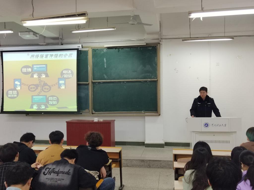 为进一步提高在校大学生对网络谣言的辨别能力,增强网络安全意识,教育倡导同学们“不造谣、不信谣、不传谣",3月26日下午,学院邀请焦作市公安局城乡一体化示范区分局网安大队于院楼开展了“打击网络谣言”专题讲座,为学生们送上一堂意义深刻的网络安全教育课。学院各年级班干部学生参与此次活动。