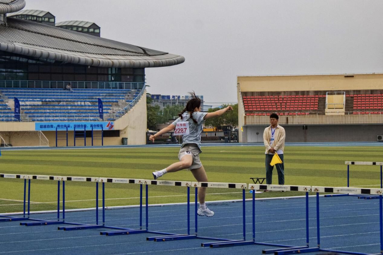 4月19日,女子400米栏决赛在东区体育场举行。代表我院参赛的同学有牛畅和王梓萌。