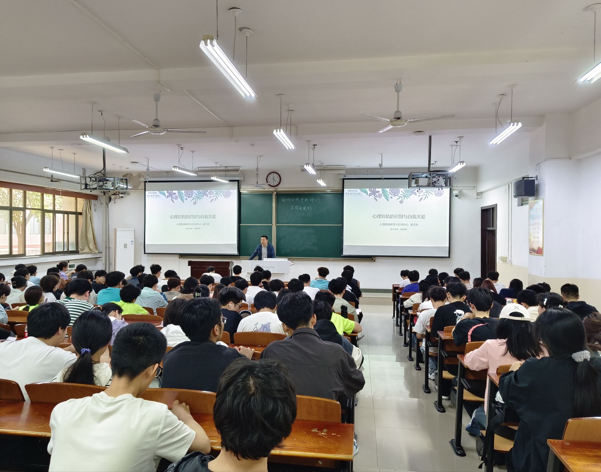 为增强学生心理健康意识,提高同学们识别心理危机的能力和自我关爱能力, 4月16日下午,材料学院邀请我校心理健康教育与咨询中心潘子彦老师在三教3106开展班级心理委员和宿舍信息员培训,学院大一大二年级的班级心理委员和宿舍信息员参加培训,活动由学院党委副书记杜小保主持。
