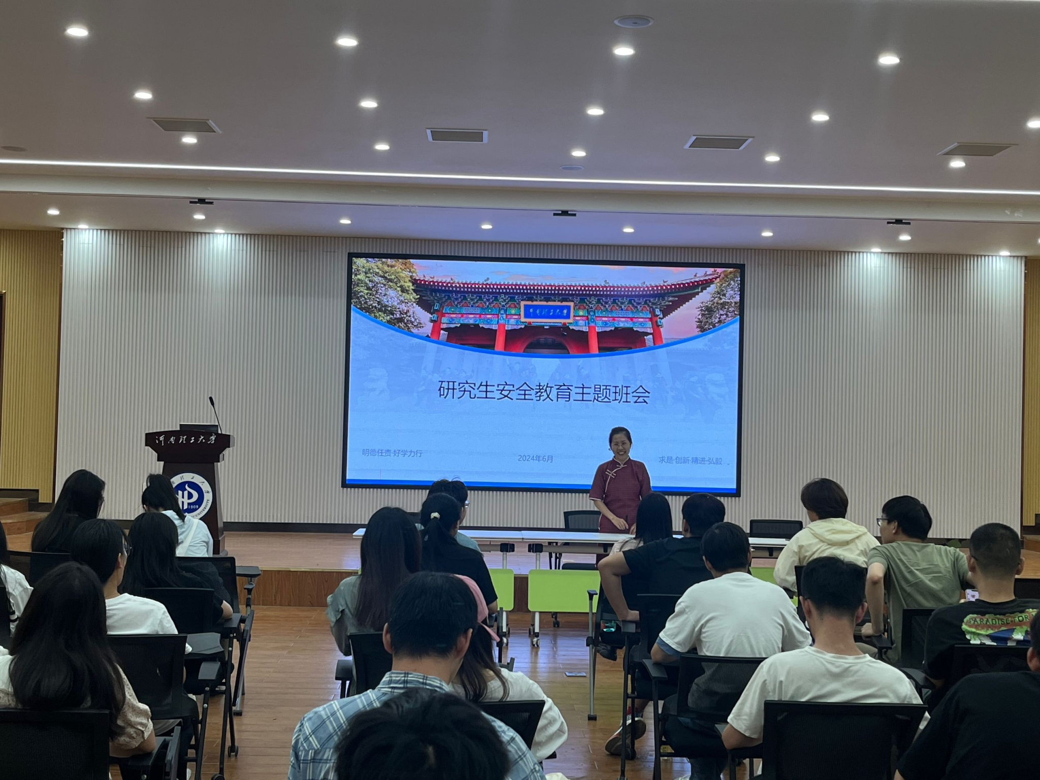 为进一步提升学生的安全意识和自我保护能力,确保毕业季安全,6月12日下午,学院在2103多功能厅组织召开研究生安全教育主题班会。本次主题班会由研究生辅导员贾俊娟主持。