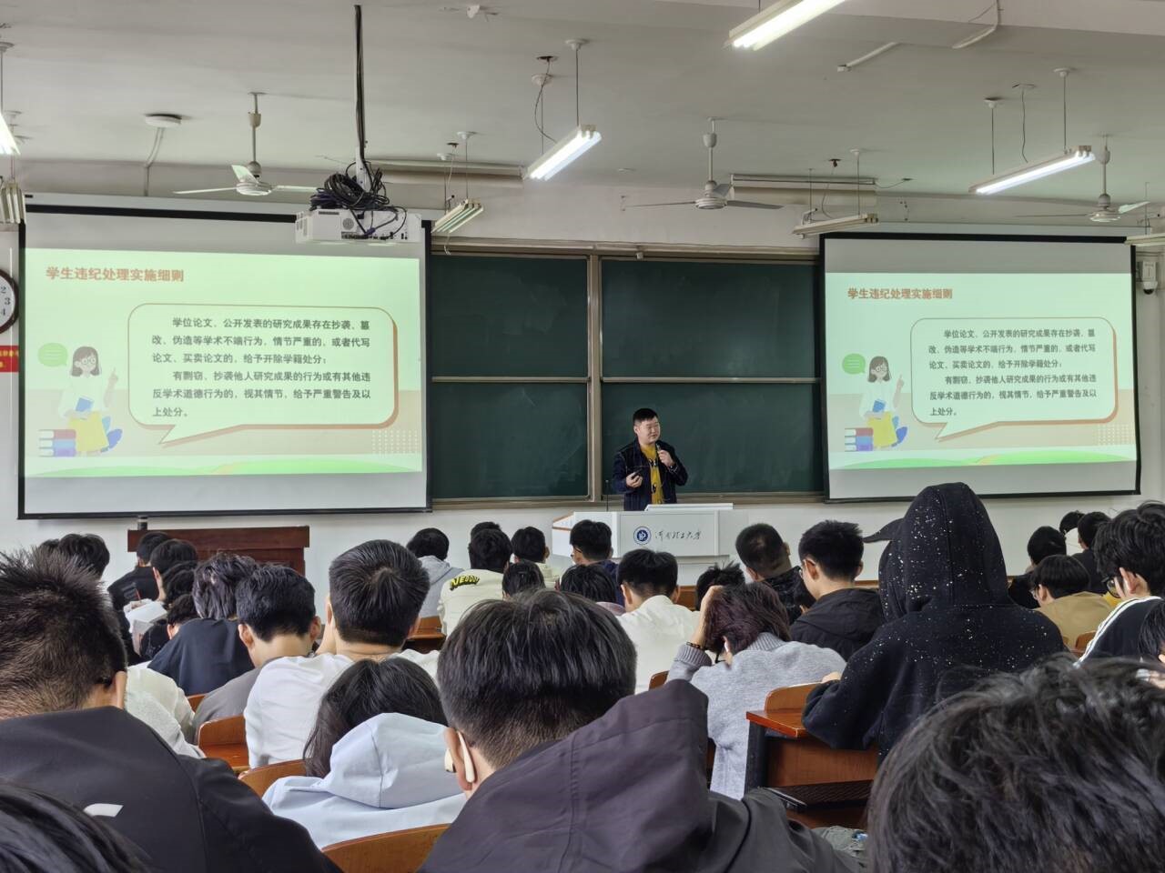 为了强化学生规则意识与综合安全防护能力,根据学校安排,10 月15 日,材料学院组织开展“恪规守矩成方圆,筑牢安全防护网” 主题班会。