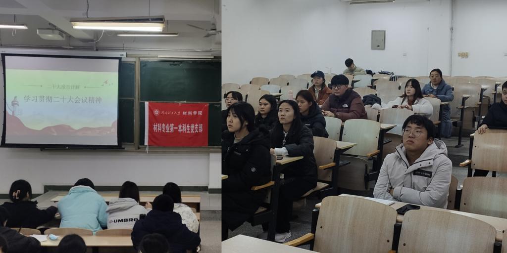 为了深入学习党的二十大精神,进一步提高政治思想,加强理论武装,提升青年同志的党性修养。12月18日,材料学院材料专业本科生第一党支部于材料学院2203教室开展政治理论学习,支部全体党员参与此次会议。