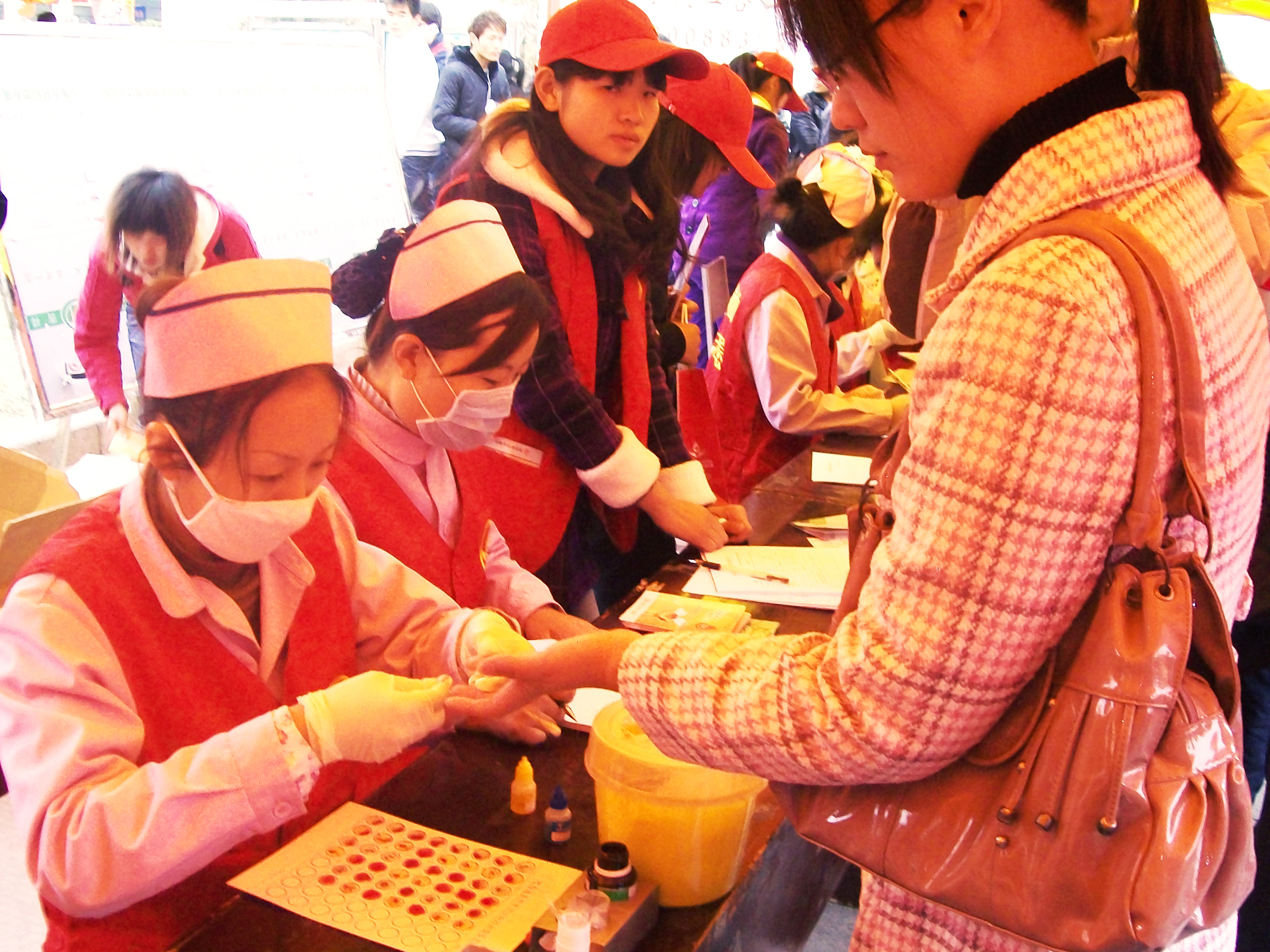 活动现场,大学生志愿者们在现场通过展示宣传板、发放献血知识宣传手册、万人签名活动等多种形式宣传献血知识,使大家充分了解和认识了无偿献血的相关注意事项及其重要意义,极大地提高了同学们参与无偿献血活动的积极性,并通过各个高校之间的交流互动,有力促进了大学生志愿者“博爱、奉献”精神的传播。宣传志愿者的“无偿献血”标志的红马甲,“红十字”标志的小红帽,在初冬的寒风中构成了理工校园一道亮丽的风景线。医疗服务队工作人员在现场热心地位同学们解疑答惑,讲解献血健康知识,同时免费提供验血服务,并向同学们赠送了精美礼品,他们热情周到的服务、吃苦耐劳的精神以及认真负责的态度得到了现场同学的赞誉。同学们积极参与宣传、验血及献血活动,凸显了高校大学生对社会公益事业的广泛关注和支持。