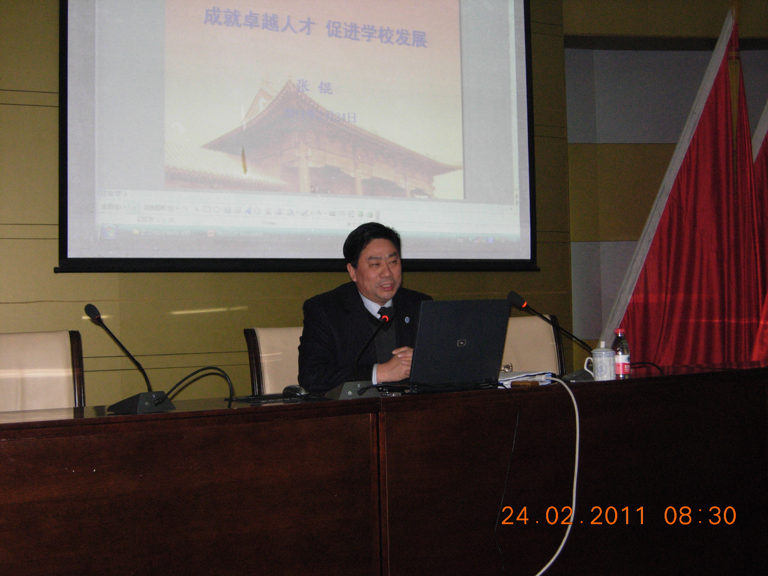 通过本次培训,学院教职工对国家形势、人才培养、教育教学改革、科研发展等有了更多的了解。尤其张锟副校长为大家做的“成就卓越人才,促进学校发展”的专题讲座,他首先为大家讲解了科学人才观的内涵、特征、层次和内容,以及科学的人才标准,然后结合我校实际,以国家教育发展纲要和人才发展纲要的若干启示为主题,分别从学校的角度和大学教师的角度分析了我们应该抓住国家大力发展高等教育的机遇,以师资队伍建设、中青年教师发展和创新团队建设为重点,争取进一步实现教职工和学校的长远发展。更是给了全院教职工以切合实际的教育和启发,为下一步的发展指明了方向。