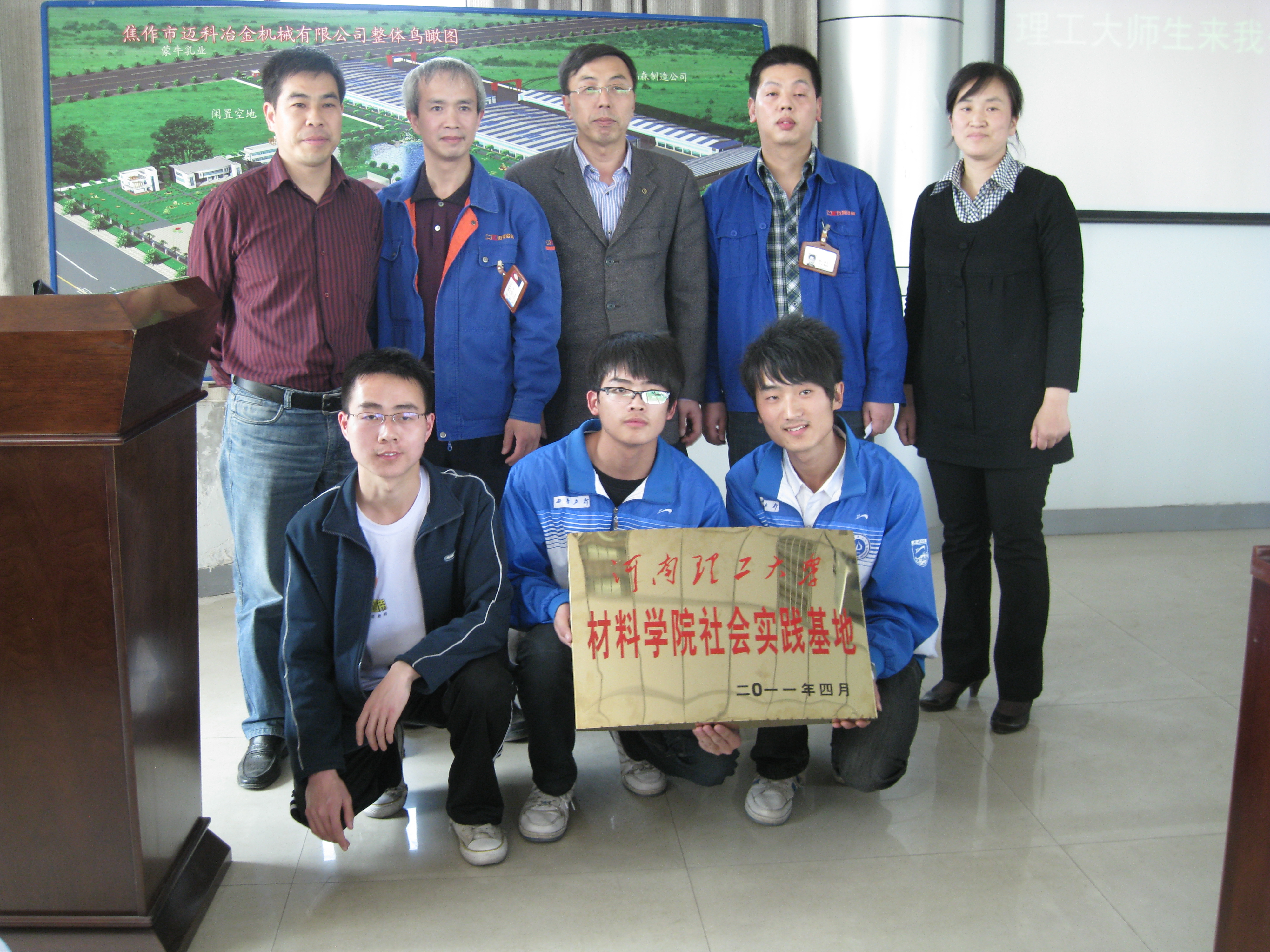 4月19日下午,我院举行“迈科冶金机械科技有限公司实践基地”揭牌仪式。麦克冶金公司技术部刘副总工程师和我院副院长张志为“迈科冶金机械科技有限公司实践基地”揭牌。院团委书记朱伶俐和材控教研室的范广新博士出席了此次揭牌仪式。