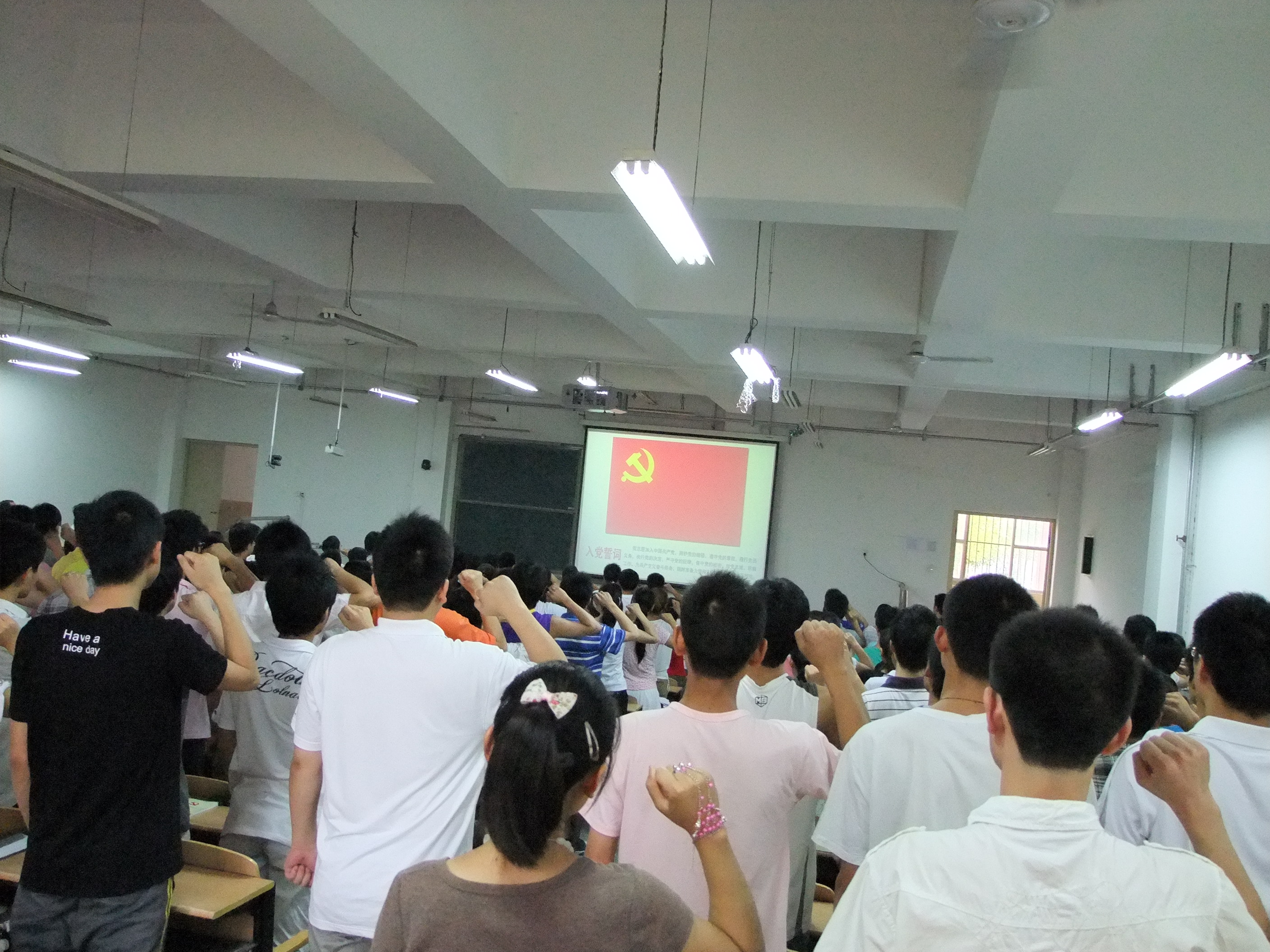 6月21日下午,我院庆祝建党90周年暨2011年入党宣誓大会在院楼2103教室成功召开。学院党委委员、教工党员代表、预备党员、正式党员代表及入党积极分子代表300余人参加了此次大会。会议由党建专职组织员王东斌主持。