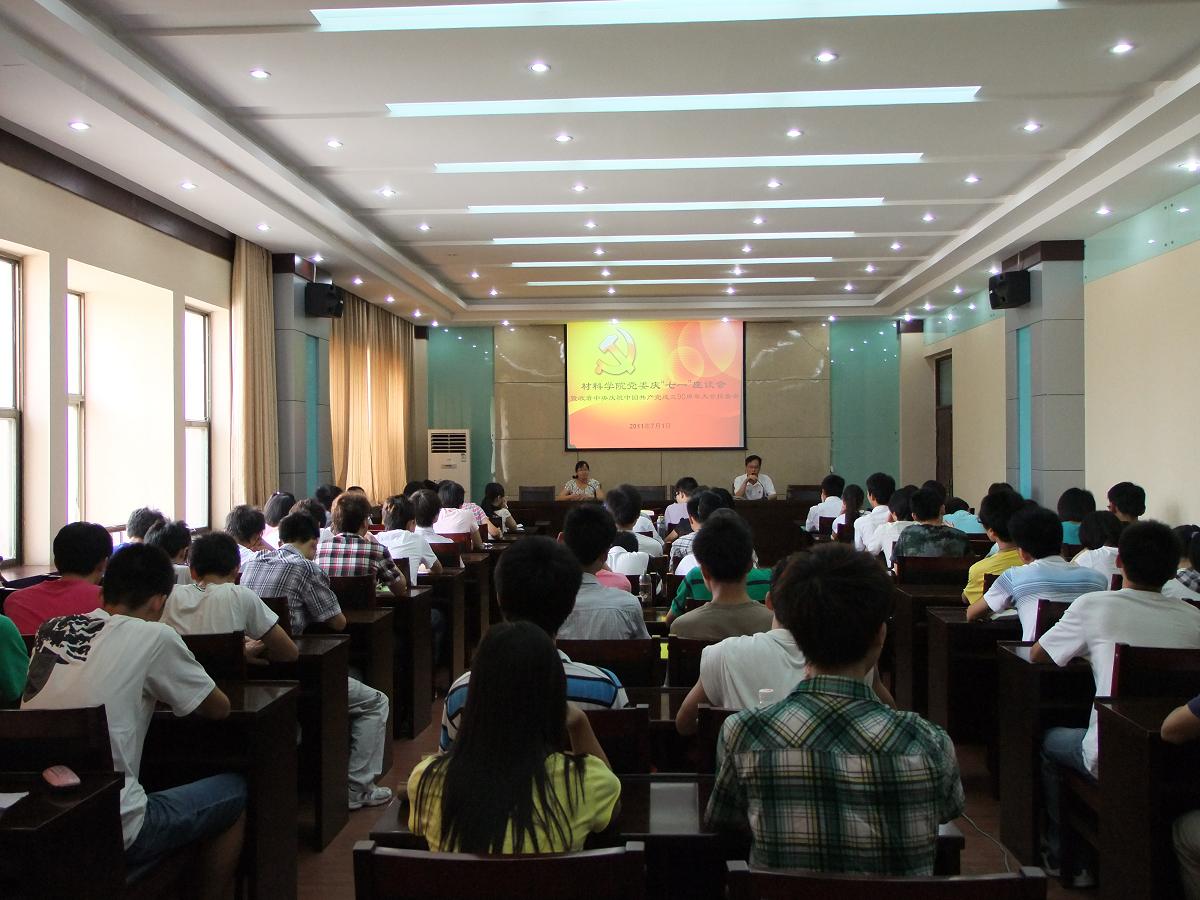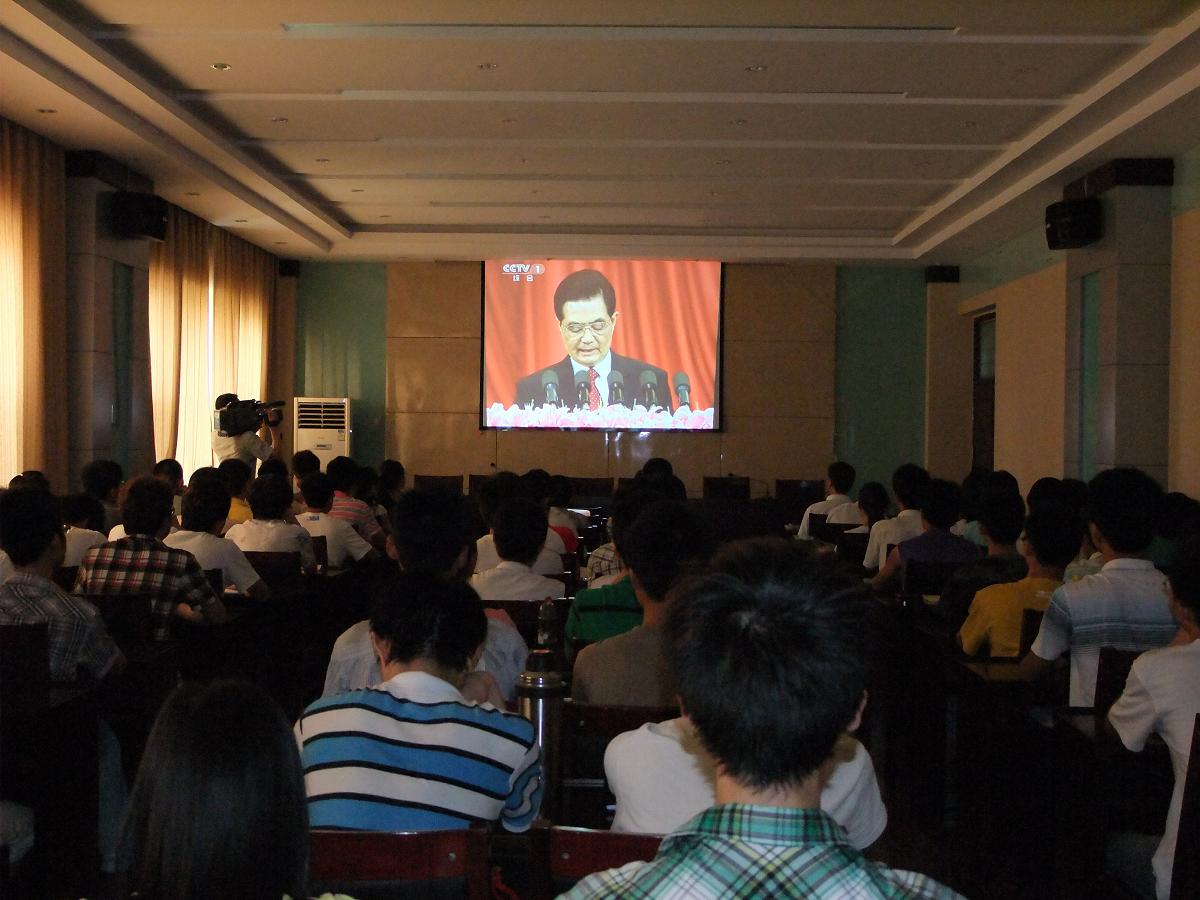 一段岁月,波澜壮阔,刻骨铭心。一种精神,穿越历史,辉映未来。1921-2001,中国共产党走过了90年波澜壮阔的光辉历程。2011年7月1日,我院在院学术报告厅1203成功举行庆“七一”座谈会暨收看中央庆祝中国共产党成立90周年大会报告会。会议由院党委副书记谢玉芬主持,院党委书记欧阳文峰、组织员、辅导员、各党支部委员及部分党员代表、预备党员代表及积极分子代表一百余人参加了此次会议。