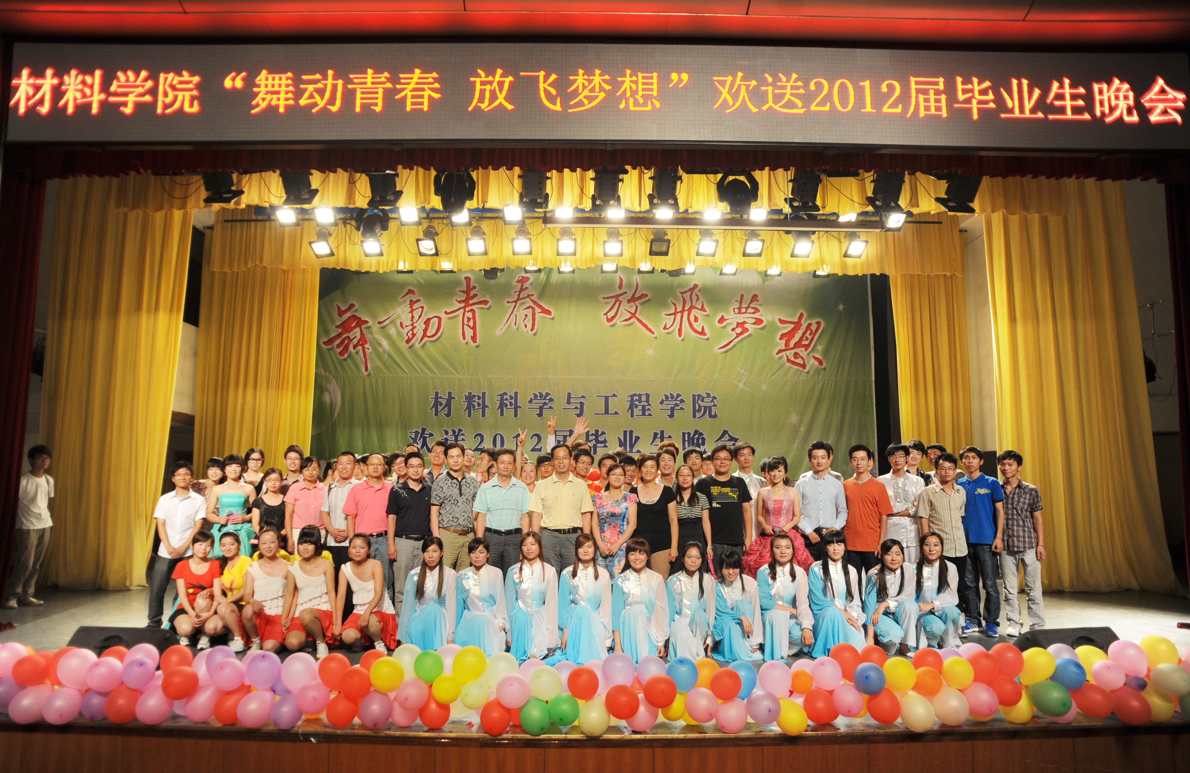 华光璀璨,照亮青春色彩;歌声悠扬,唱响金色年华。6月10日晚,我院以“舞动青春,放飞梦想”为主题的欢送2012毕业生晚会在南校区小礼堂举行,校团委副书记陈昊老师,院领导欧阳文峰、张传祥、谢玉芬、朱建平,各系(室)、各部门负责人以及近千名师生共同观看了晚会。校团委副书记陈昊老师也应邀观看了晚会。在绚丽多彩的灯光下, 悠扬宏伟、翩然起伏的歌伴舞为本场晚会拉开了序幕。诗歌诵《材料颂》真挚动人,情感与文字的血脉涌动,无声的情怀如织如密蜿蜒于会场的每位听众耳边心中,余音绕梁,空谷回响;舞蹈《泉水清甜》甜美悠扬,清新流畅,静逸中流溢着灵动。舞蹈《舞动青春》青春动感、热情洋溢,激情四射的舞姿展现出了大学生的青春活力。小品《天那边》以大学生支教为主题,配以幽默的对话,展示了当代理工学子服务西部、建设西部的良好精神风貌。08级辅导员程东锋老师的出现更是在现场引起了轰动,一时间掌声雷动,呐喊阵阵,他深情的一曲《我是一只小小鸟》赢得了观众的阵阵掌声,高昂壮阔的曲调,热情奔放的旋律带给众心灵的震撼唱动心弦。随后,毕业生代表与老师代表分别发表感言,表达了对母校对恩师的感激和不舍之情,用真情诠释了理工师生是相亲相爱的一家人,真挚的情谊打动了在场的每一位观众,老师们对毕业生的祝福和对开创美好明天的无限期许萦绕在毕业生的心头,现场充满着感动的气氛。然后钢琴独唱《可惜不是你》以其动人的旋律触动着观众们的心弦,静美流远、感人心扉。而接下来的歌曲联唱更是将整场晚会推向了高潮,歌手用他们的歌声感染了在座所有人的心灵,台下观众的欢呼声、呐喊声不绝于耳。一曲曲,曲尽人未歇;一幕幕,幕落情仍浓。静谧柔和的灯光,流动闪烁的身影,整个舞台流露出隽永而温馨的氛围。最后晚会在舞蹈《毕业照》中圆满谢幕。踏着岁月的脚步,携着淡淡的怅惘,诗情婉转中我们体味着已逝的光辉岁月,澎湃激荡中我们点燃未来的通亮火炬。整场晚会师生们始终沉浸在浓浓的离别情中,不仅表现了深厚的师情、同窗义,同时也展现了材料学子对未来的憧憬与期盼,他们也由此载着希望、带着梦想,向胜利的彼岸扬帆启航。