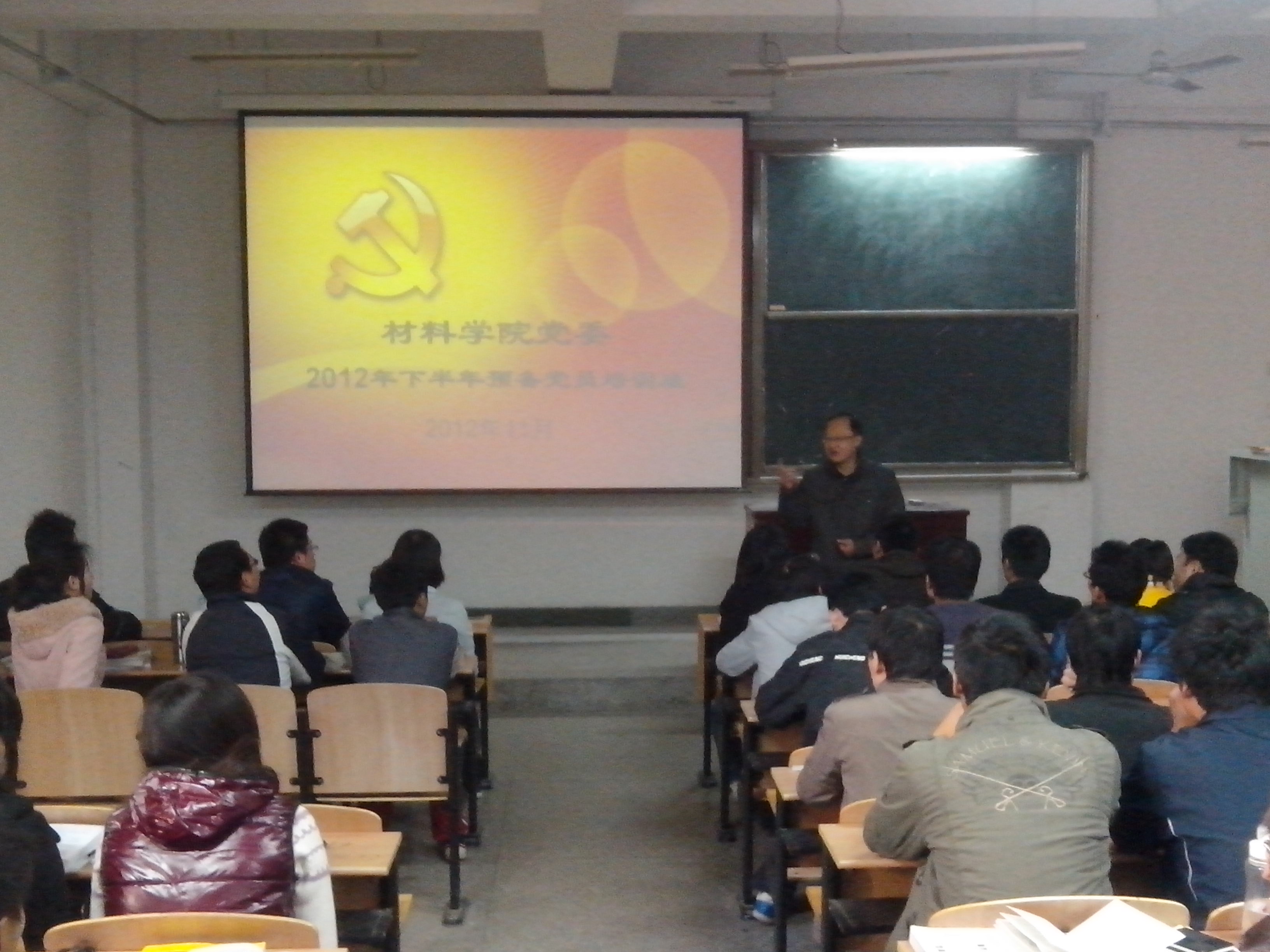 为进一步加强学生预备党员的培养和教育,充分发挥其先锋模范作用。11月6日下午,我院2012年下半年预备党员培训班开班仪式在院楼2203室举行。2012年上半年新发展和下半年新转入的预备党员参加了此次培训。