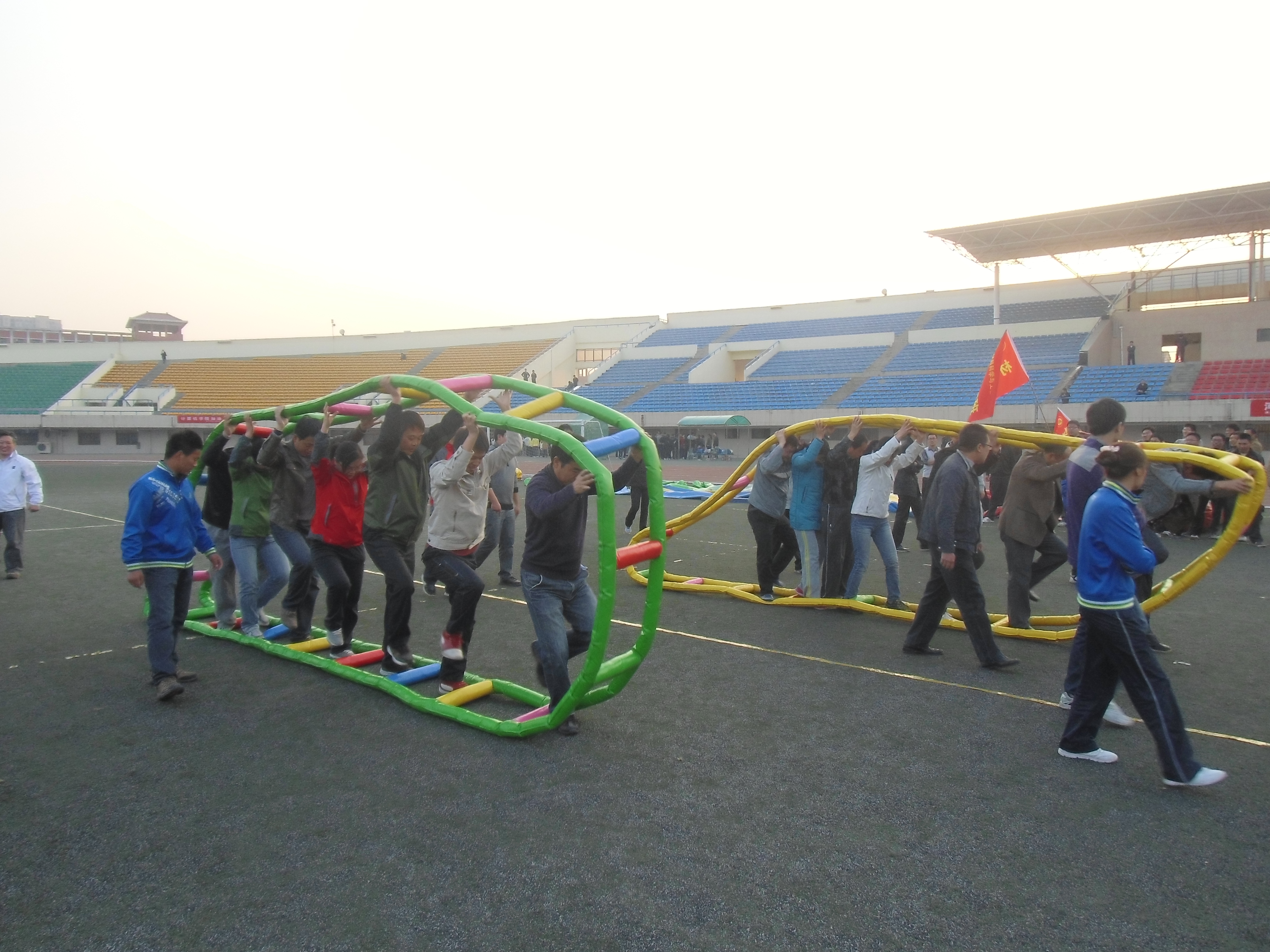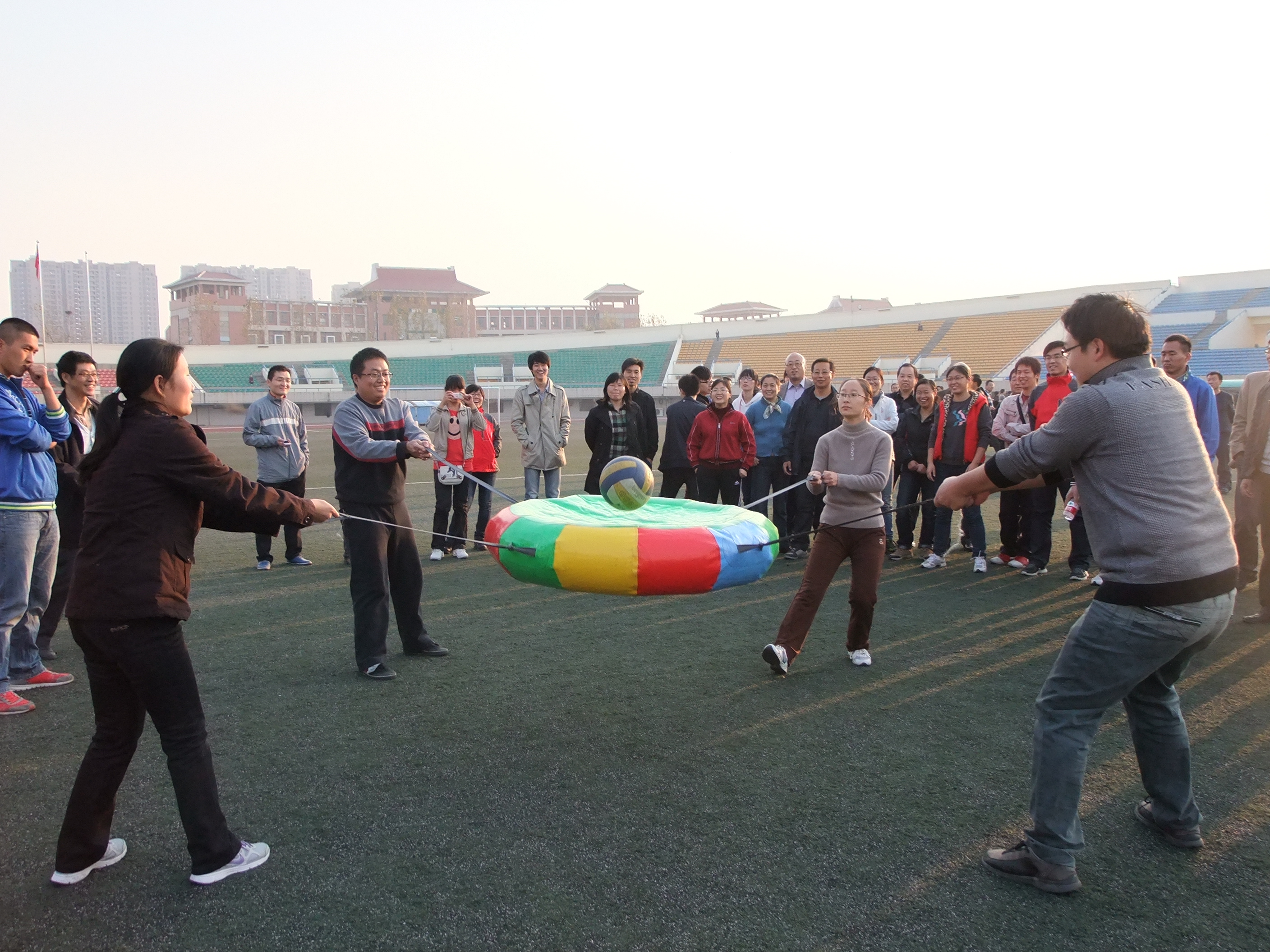 为丰富我院教职工的业余文化生活,调动教工的工作热情,增强各专业教师之间交流,提高全院教职工的凝聚力,我院工会于11月6日下午在我校东区田径场举办了2012年教工趣味运动会。此次教工趣味运动会形式新颖,项目多样,充满无限趣味性与挑战性。比赛共设有超级障碍赛、搭桥过河、众星捧月、财源滚滚、相扑和毛毛虫竞速六个项目。比赛开始前,参赛教职工现场抽签,将男女教工均分为六组,并由各组推荐一名队长带队参加比赛。比赛时,整个运动场洋溢着轻松欢快的氛围。加油声、喝彩声,欢笑声交织在一起,此起彼伏,每位教职工都沉浸在这场运动会带来的青春与活力之中。在超级障碍赛中,教职工们施展浑身解数,奋力向前,有的教工绊倒在地,还有的教工跑掉了鞋子,却依然挡不住他们的激情,仍毫无顾虑地跑着,逗得其他教工忍俊不禁。而在搭桥过河、众星捧月、财源滚滚和毛毛虫竞速这些环节,教工们更是积极参与,默契配合,博得了观众的阵阵喝彩。相扑环节,由几个教工身穿异服,轮番参与相扑比赛更是趣味浓厚。比赛最后在阵阵欢笑声中落下帷幕,并以小组为单位评出名次颁发奖品。本次教职工趣味运动会的成功举办,不仅提升了我院教职工的运动积极性,展现我院教职工激情与活力;同时加强了教职工之间的沟通与协作,进一步增强了学院的凝聚力,为学院又好又快发展营造了良好的氛围。