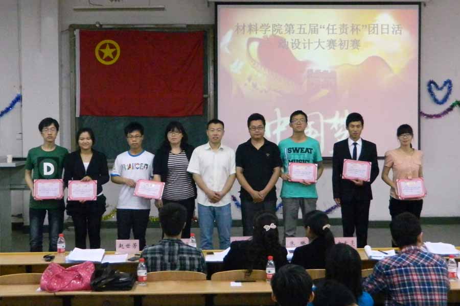 为贯彻落实十八大重要指示精神,深入学习体会两会工作指导思想,引导广大青年团员树立坚定跟党走中国特色社会主义道路的信念,坚定不移地跟随党的步伐,共同实现伟大复兴的中国梦,5月26日,我院团委响应校团委号召于院楼2103教室举行以“青春志 中国梦”为主题的第五届“任责杯”团日活动设计大赛。朱伶俐、朱琳、高增、赵世芳、史长亮五位老师担任评委。部分班主任出席了此次活动活动。 比赛现场,气氛活跃。参赛班级以PPT展示和讲解结合的方式向评委和现场同学介绍了各自的团日活动。,他们自信大方、激情飞扬,展示了丰富多彩、各具特色的团日活动。征文比赛、表演话剧、调查问卷、主题班会、诗歌朗诵、参观科技馆、篮球联谊赛……他们通过不同的形式表达着自己的青春志,中国梦。在老师提问环节中,评委们对每个班级的团日活动都进行了详细的点评,表扬了同学们在此次活动中所展现的积极进取、团结协作、献身祖国、追求梦想的优良品质,同时也指出在比赛中出现的缺点,希望同学们能再接再厉,创造新的辉煌。经过激烈的角逐,无机非11-02班荣获本次比赛的一等奖,材料12-01班、化工11-04班、无机非11-01班及材料12-15班获得二等奖,材料12-13班、矿加11-01班、材料12-03班、高分子11-01班等班级获得三等奖。 评委们向各获奖班级颁发了荣誉证书并合影留念。赛后,团委书记朱伶俐作了总结发言,她指出举办此类活动的目的是锻炼同学们的能力,提高大家的综合素质,促进全面发展。同时她指出了各班级活动中的不足并给予改进的建议。最后她强调同学们不能空谈梦想,所谓“空谈误国,实干兴邦”,希望大家以此次活动为契机,找准自己的梦想,努力追梦。 此次比赛不仅增强了班级凝聚力,而且进一步加强了同学们对“中国梦”的深刻认识,引发了他们对自己梦想的思索,鼓舞材料学子为青春、为梦想而奋斗。