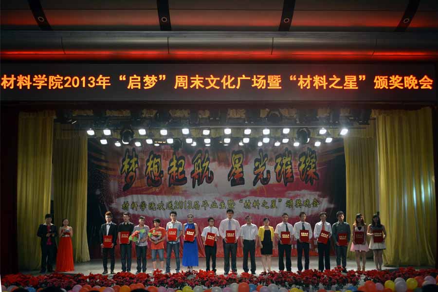 树材料模范,扬材料品质。为激励学生成长成才,我院举办了“材料之星”评选活动。6月1日晚,“材料之星”颁奖晚会在小礼堂成功举行。院领导欧阳文峰、管学茂、谢玉芬等与近千名师生参加了庆典并观看晚会。伴随着精彩的啦啦舞表演,“材料之星”颁奖晚会正式拉开帷幕,一场由“材料人”精心准备的“视听盛宴”走进人们眼帘。晚会上,一个个精彩的节目将全场气氛推向一个又一个高潮。紧接着,“科技之星”、“学习之星”、“教学之星”、“服务之星”等奖项获得者依次上台,学院领导一一颁奖并与他们合影留念。获得特别奖的张义顺教授作为教师获奖代表讲话,他表达了对学生的美好祝福,并希望学生不忘母校,心怀“材料精神”,带着所学的技能更好的融入社会。作为“科技之星”的刘玉飞同学作为获奖学生代表发言,表达了自己对学校、学院的感谢与祝福。最后,晚会在09级毕业生们寄托对青春梦想的渴望与追求的舞蹈《天空》中落下帷幕。本次晚会体现了“材料人”对河南理工大学、材料学院的深深祝福,同时也激发了学生提升对科技创新、拓展自我、提升素质等方面能力的激情。该院学生纷纷表示,一定以“材料之星”为榜样,切实投入科技创新,努力学习,成长成才,为学校和学院争光!据悉,“材料之星”评选活动是我院的品牌活动,旨在激励大学生在文明道德、学习成才、文体实践、科技创新等方面树立典范,成为全面发展的优秀人才。目前该活动已成功举办了两届,在师生中取得了较大的反响和良好的效果。