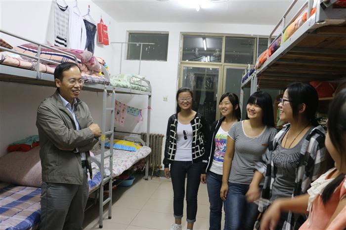 来到新生宿舍,学院领导关切地询问新生的饮食、环境适应、宿舍成员到校状况等情况,并且给外省籍学生介绍了学校各个餐厅的情况,同时表达了对少数民族同学的关爱与尊重。我院领导亲切地说道,学校就是大家的第二个家,遇到困难要及时向“家长们”寻求帮助。此外,院领导还特别叮嘱新生要提高警惕性,谨防上当受骗,并对新生提出的未来学习、生活中可能出现的困惑等问题给予现场解答。学院领导的亲切问候和语重心长的嘱咐引来了同学们的阵阵掌声。新生们对院领导的关怀表示感谢,并表示将不辜负学院领导和老师的期望,刻苦学习、早日成才、回报学院、回报社会,实现自己的理想。