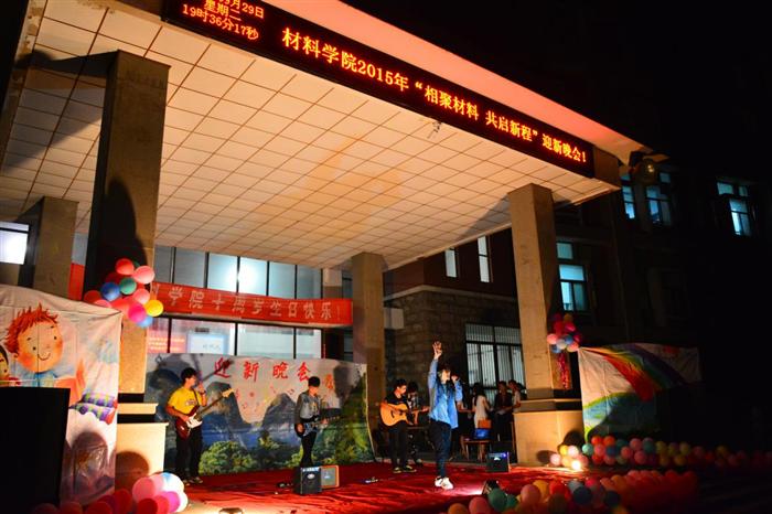 流光溢彩迎新夜,心心连心齐飞扬,9月29日,我院2015年迎新晚会在院楼大门拉开帷幕,院党委副书记谢玉芬、团委老师、2015级新生辅导员及我院500余名新生共同观看了演出。