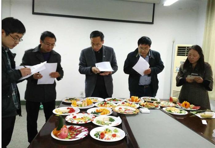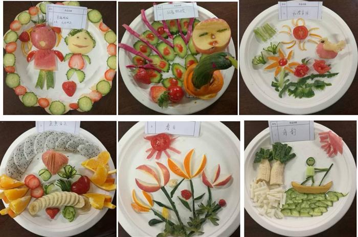 比赛所用材料由工作人员提前按参赛人数分好,每位参赛选手通过抽签方式选定食材。比赛现场,学院女教工积极参与,每位选手根据自己的食材进行创作,制作的水果拼盘富有想象力,造型美观、构思新颖、色泽鲜美,作品名称生动形象、寓意深刻。最后,在各位评委认真、公正的评判下,评出了一等奖2名,二等奖5名,三等奖12名。
