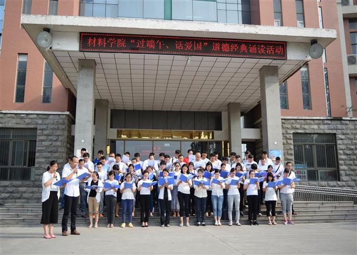 为丰富校园文化、创建全国文明单位,我院于5月23日下午在院楼门口举办主题为“过端午、话爱国”的道德经典诵读活动。活动由院团委副书记韦玉潇主持,院领导欧阳文锋、管学茂、谢玉芬、郭学锋、朱建平等全院教职工参加此次活动。